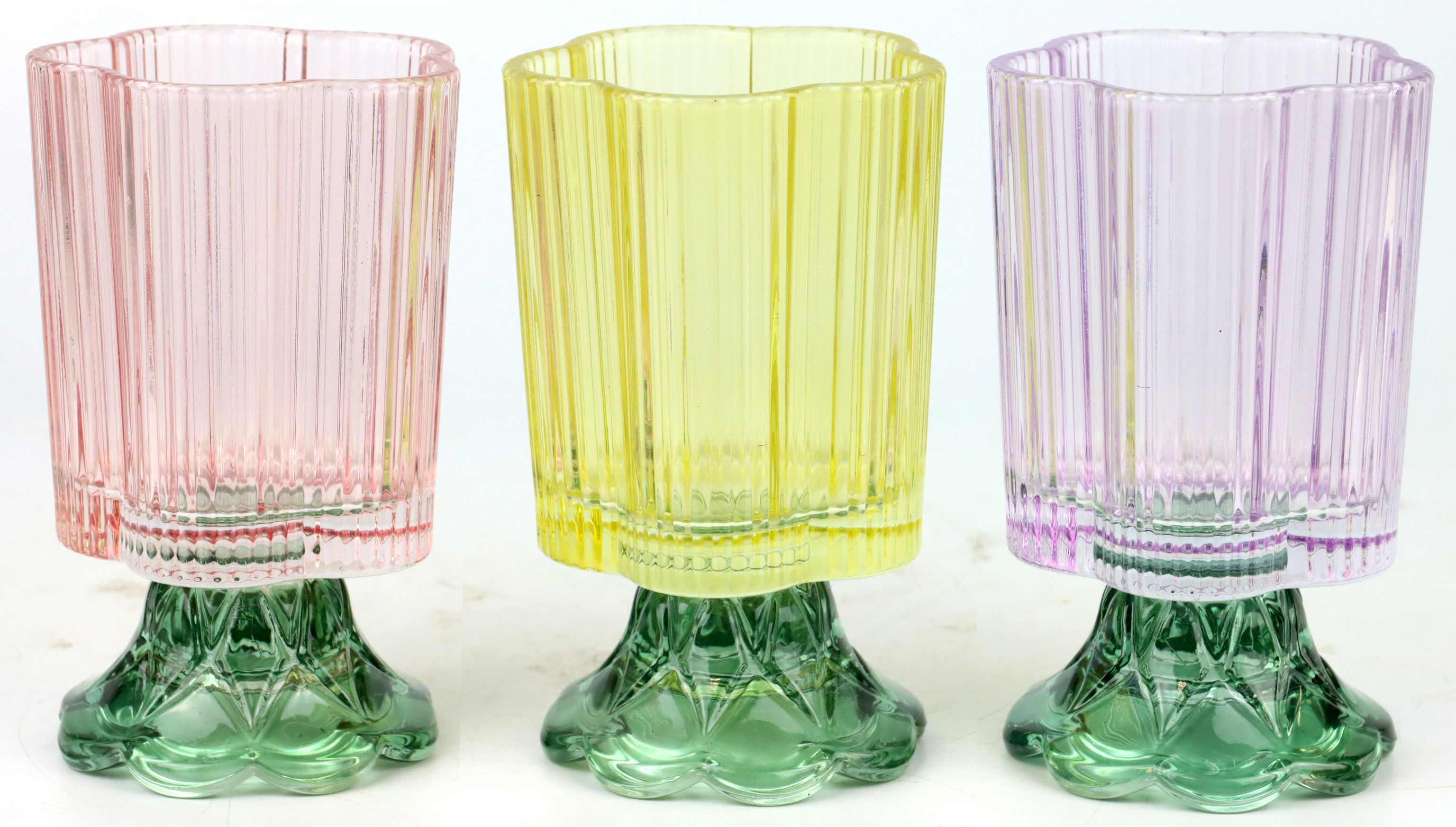 Hergestellt aus hochwertigem buntem Glas, besticht jede der drei Vasen mit einer Höhe von ca. 12 cm durch ihre einzigartigen Farbspiele und Reflexionen. Diese dekorativen Elemente sind nicht nur ein Blickfang auf jeder Fensterbank oder Terrasse, sondern auch ein Hingucker als Tischdekoration bei besonderen Anlässen. Das Zusammenspiel der lebendigen Farben sorgt in jedem Raum für heitere Akzente und schafft eine warme, einladende Atmosphäre.