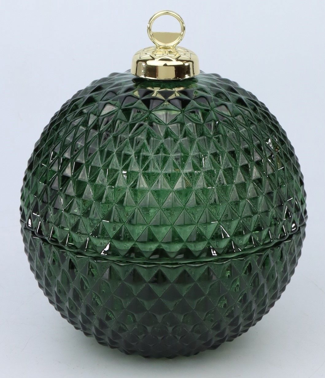 Angefertigt aus hochwertigem Glas, überzeugt diese Glasdose mit Feinheiten in der Verarbeitung. Das dunkle Grün des Glases erinnert an tiefgrüne Tannenwälder und weckt Assoziationen von ruhigen, winterlichen Nächten. Dazu passt die Artikelform ideal, die an traditionelle Weihnachtsbaumkugeln erinnert und daher perfekt zu jeder weihnachtlichen Dekoration passt.