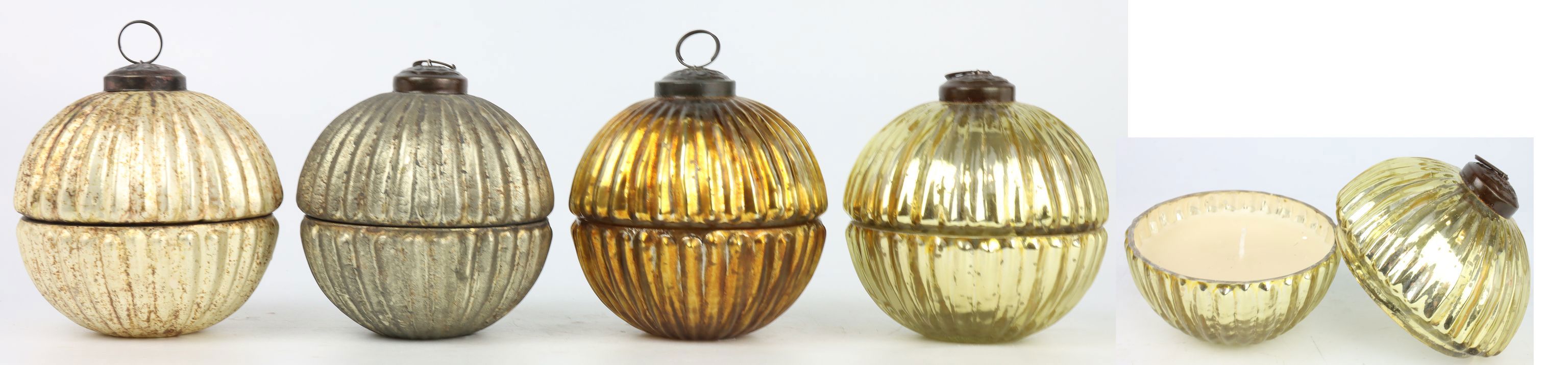 1. Exklusives Kerzenglas-Set in Form einer Christbaumkugel.