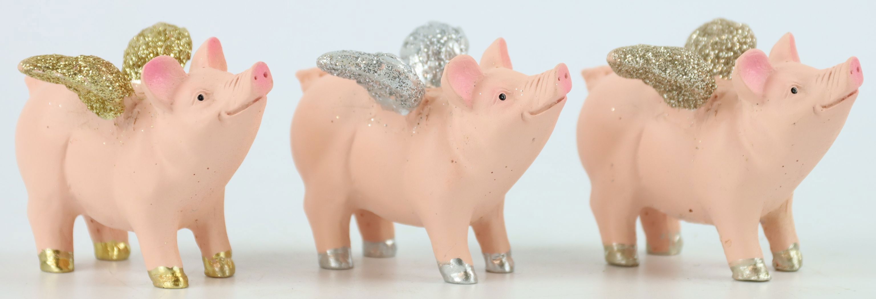 Artikelnummer 8122 aus unserem Online-Shop lässt die Weihnachtszeit noch magischer werden. Unser himmlisches Set "Lucky", bestehend aus drei charmanten Schweinen mit Flügeln, ist eine faszinierende Ergänzung für jede weihnachtliche Dekoration.
