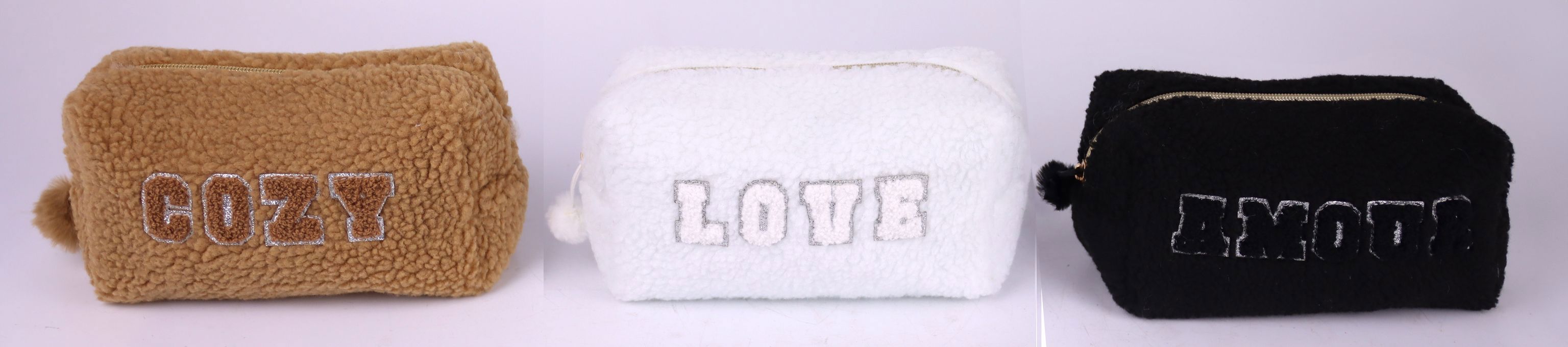 Jedes Täschchen hat eine Größe von ca. 20 cm und präsentiert sich in modischen Farben: braun, weiß und schwarz. Der elegante Schriftzug verleiht jedem Täschchen ein individuelles und modernes Aussehen, das sich hervorragend in die aktuellen Deko- und Lifestyle-Trends einfügt. Diese Täschchen sind vielseitig einsetzbar und bieten die ideale Aufbewahrungslösung, egal ob für Kosmetika, Schreibwaren oder andere Accessoires. Die angenehme Haptik und der stilvolle Look werden Ihre Kunden begeistern und Ihrem Sortiment einen echten Mehrwert verleihen.