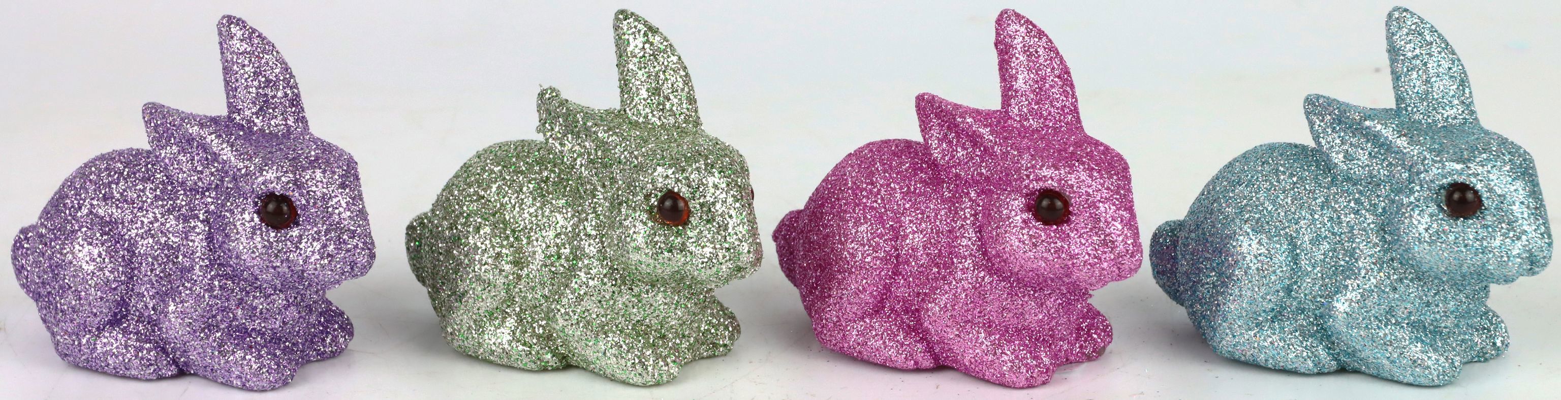 Erleben Sie die Magie des Frühlings mit unserem bezaubernden "HASEN MAGNIFICENCE" Set! Dieses vierteilige Set ist ein absolutes Must-have für jeden stationären Einzelhändler, der seinen Kunden in der Ostern-Saison etwas ganz Besonderes bieten möchte. Jedes der Hasenfiguren ist kunstvoll aus hochwertigem Kunststoff gefertigt und mit einem funkelnden Glitzer-Finish versehen, das für das gewisse Etwas sorgt. Mit einer Größe von ca. 7 cm machen sich die Hasen ideal als dekorative Elemente in Schaufenstern oder als Highlight auf den Verkaufsflächen im Bereich Wohnen und Lifestyle.