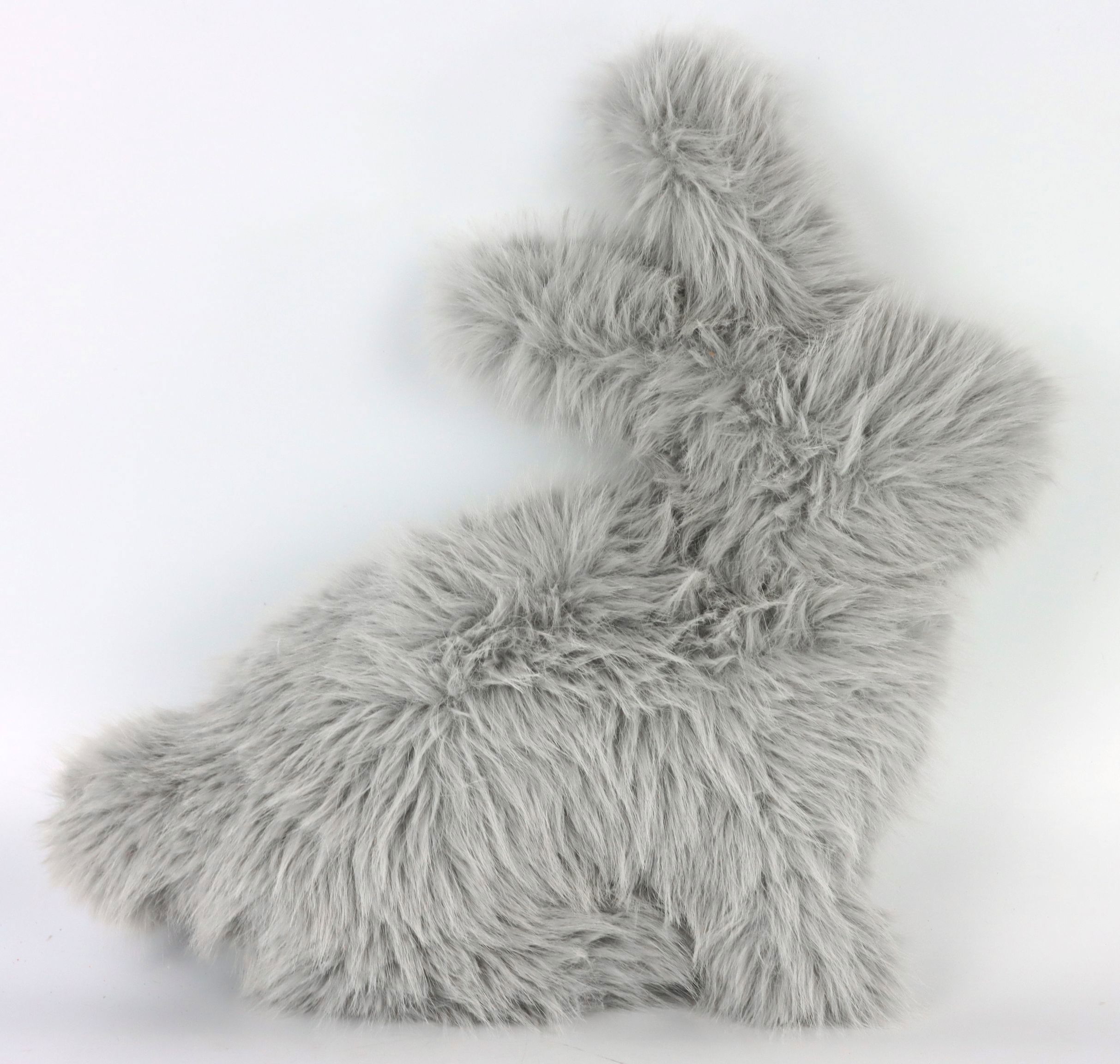 Das Hasenkissen "FURRY" beeindruckt mit einem eleganten Design aus grauem Fell, das vollständig aus hochwertigem Fakefur und Polyester gefertigt ist. Mit einer großzügigen Größe von etwa 45 cm bietet es sowohl Komfort als auch Dekorationswert. Das weiche Material macht es zu einem perfekten Begleiter für gemütliche Stunden auf der Couch, während seine bezaubernde Optik jeden Raum sofort aufwertet.