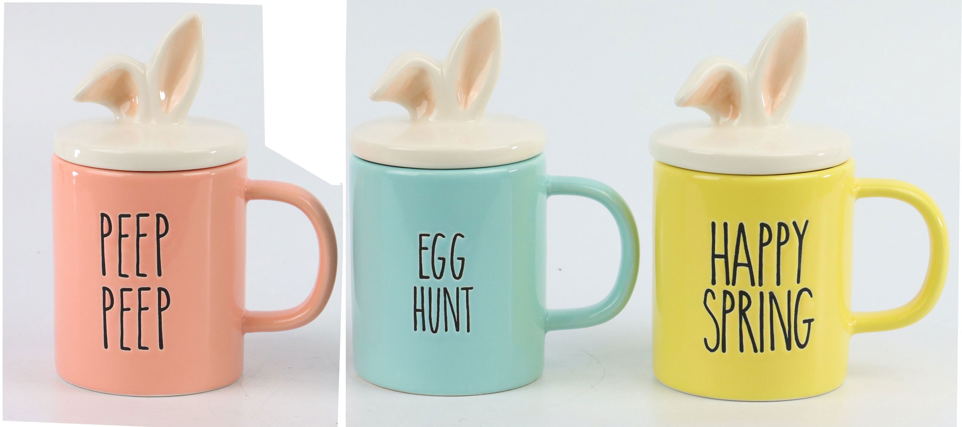 - Drei hochwertige Keramiktassen mit Deckel im „Candy Easter“ Design
