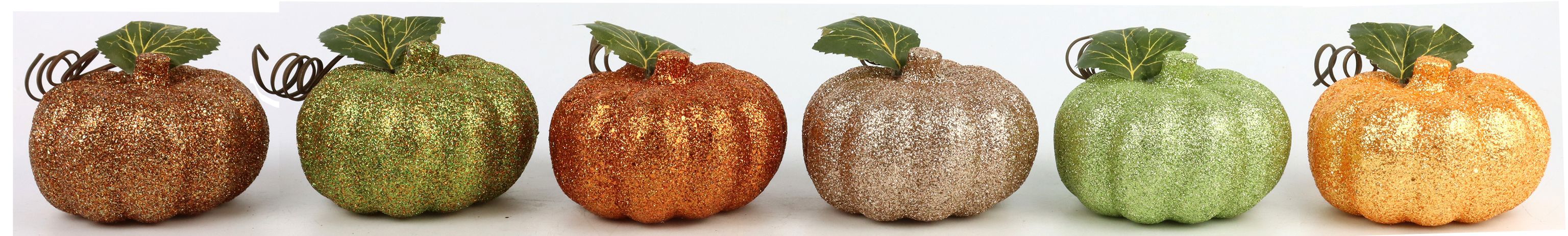 - Die Kürbisse kommen in einer Mischung aus Herbstfarben und glitzern für einen zusätzlichen visuellen Reiz
