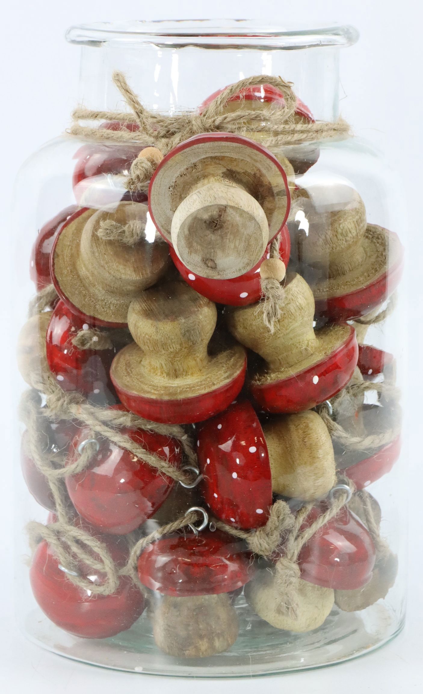 Bestellen Sie jetzt dieses 33-teilige Set "Glas mit Pilzhängern in Rot"aus Mangoholz und bringen Sie ein Stück warme und gemütliche Atmosphäre in Ihr Zuhause.
