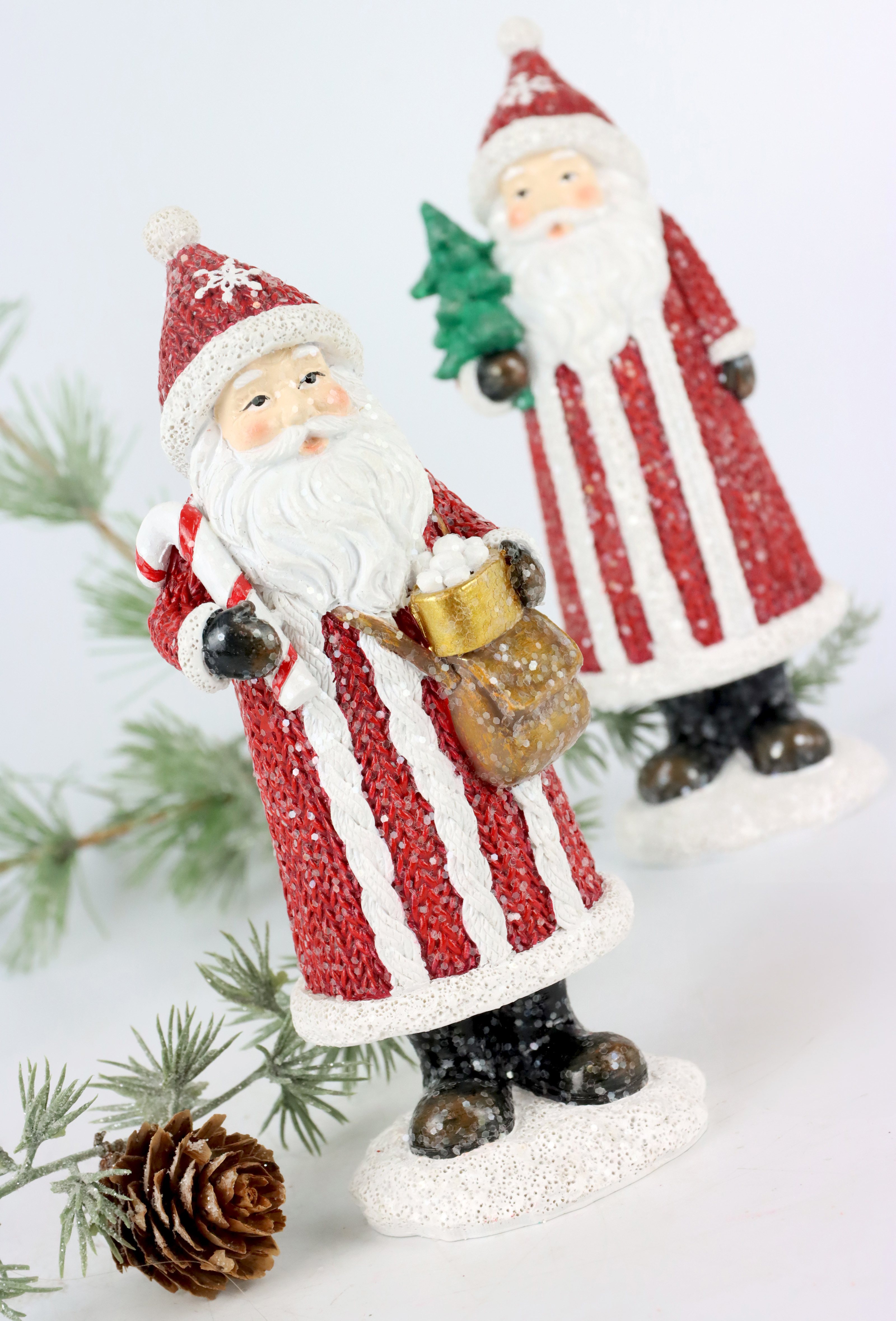 Stilvoll und einzigartig sind diese nostalgischen Weihnachtsmänner aus hochwertigem Polyresin hergestellt. Jede der sorgfältig ausgearbeiteten, ca. 16 cm hohen Figuren, strahlt in der Weihnachtszeit ein ganz besonderes Flair aus. Sie sind mehr als nur Dekorationsstücke, sie hauchen jedem Raum und jedem Schaufenster regelrecht Leben ein und verbreiten dabei eine warmer, nostalgischer Charme.