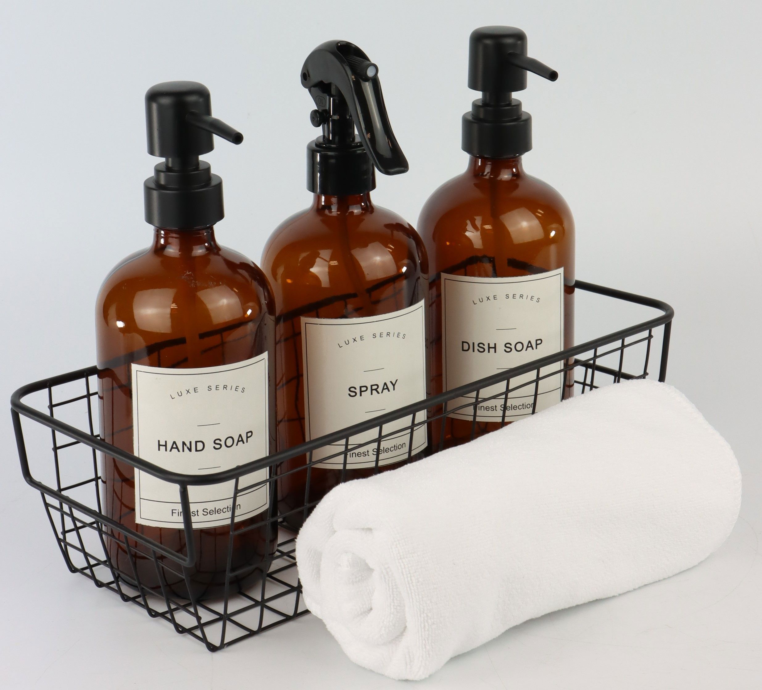Each component of this set has been carefully selected to offer maximum functionality. The ensemble includes a sturdy soap dispenser, a tasteful shelf for sponges and brushes, as well as three additional utensils to complete the sink area. Thanks to the well thought-out design, all components are easy to clean and therefore contribute to a hygienic kitchen environment.