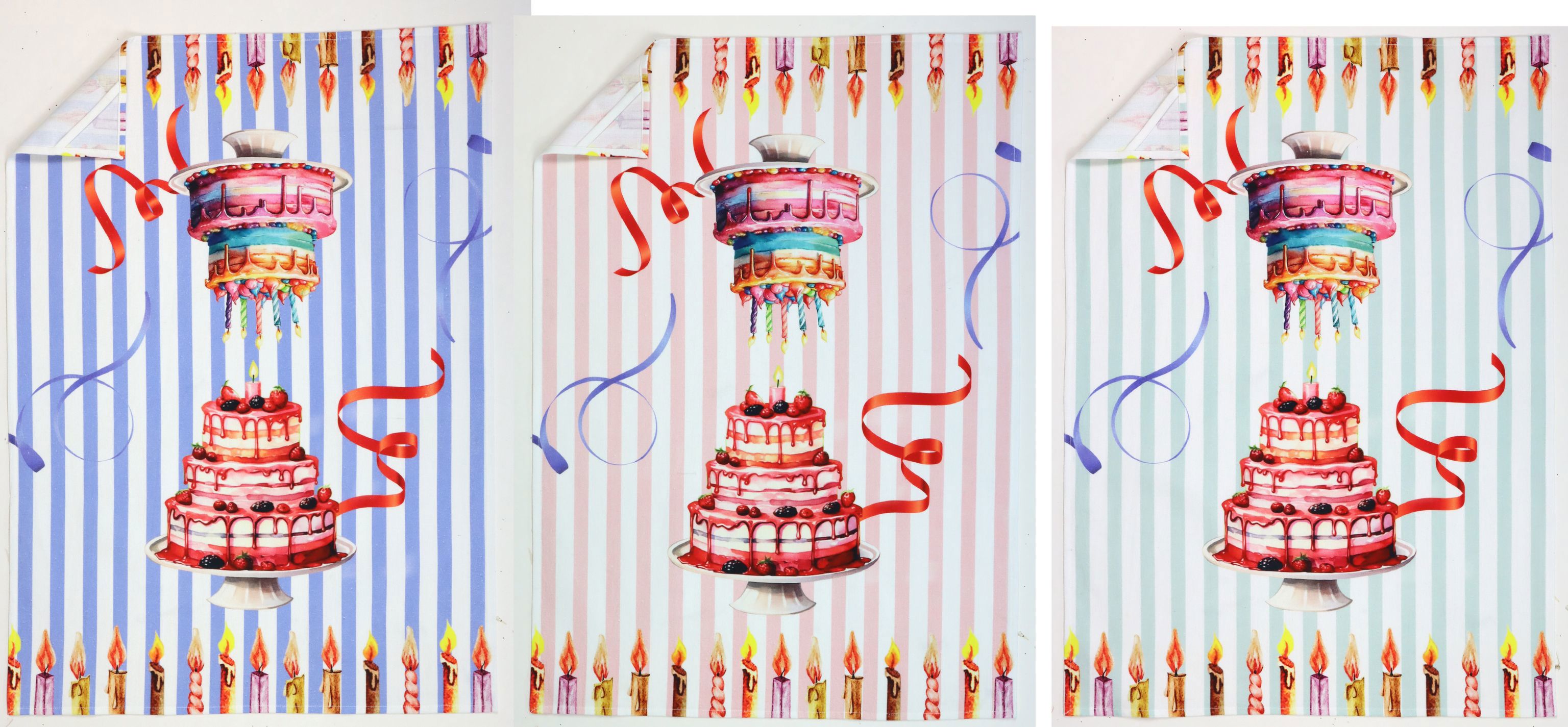 - Set of 3 kitchen towels in "Cake Party" design