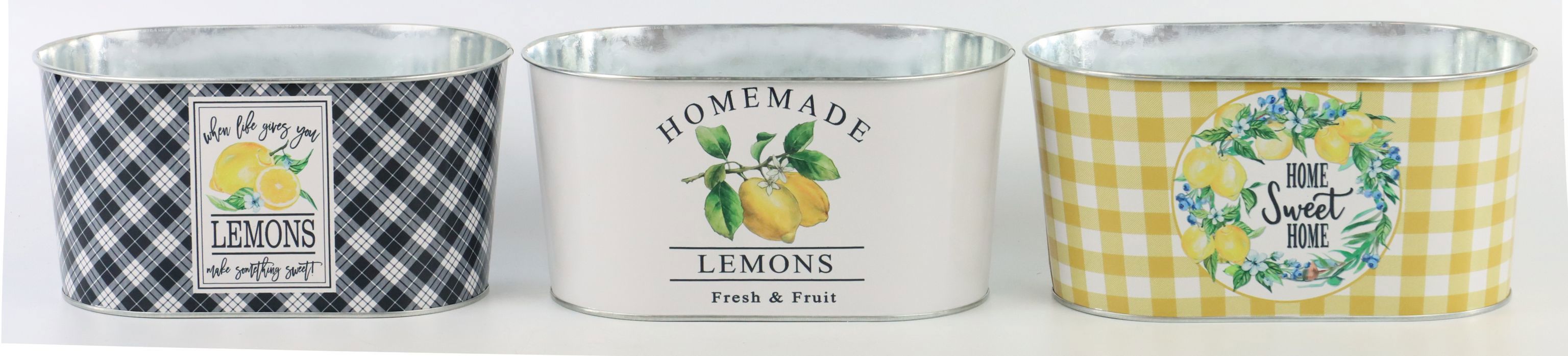 Discover the charming JARDINIEREN "SWEET LEMON" S/3 flower box set to enrich your home and lifestyle range. This three-piece set is the perfect choice for brick-and-mortar retailers who want to offer their customers a refreshing and stylish way to display plants. Made from high-quality zinc, it combines functionality and design in one appealing product.