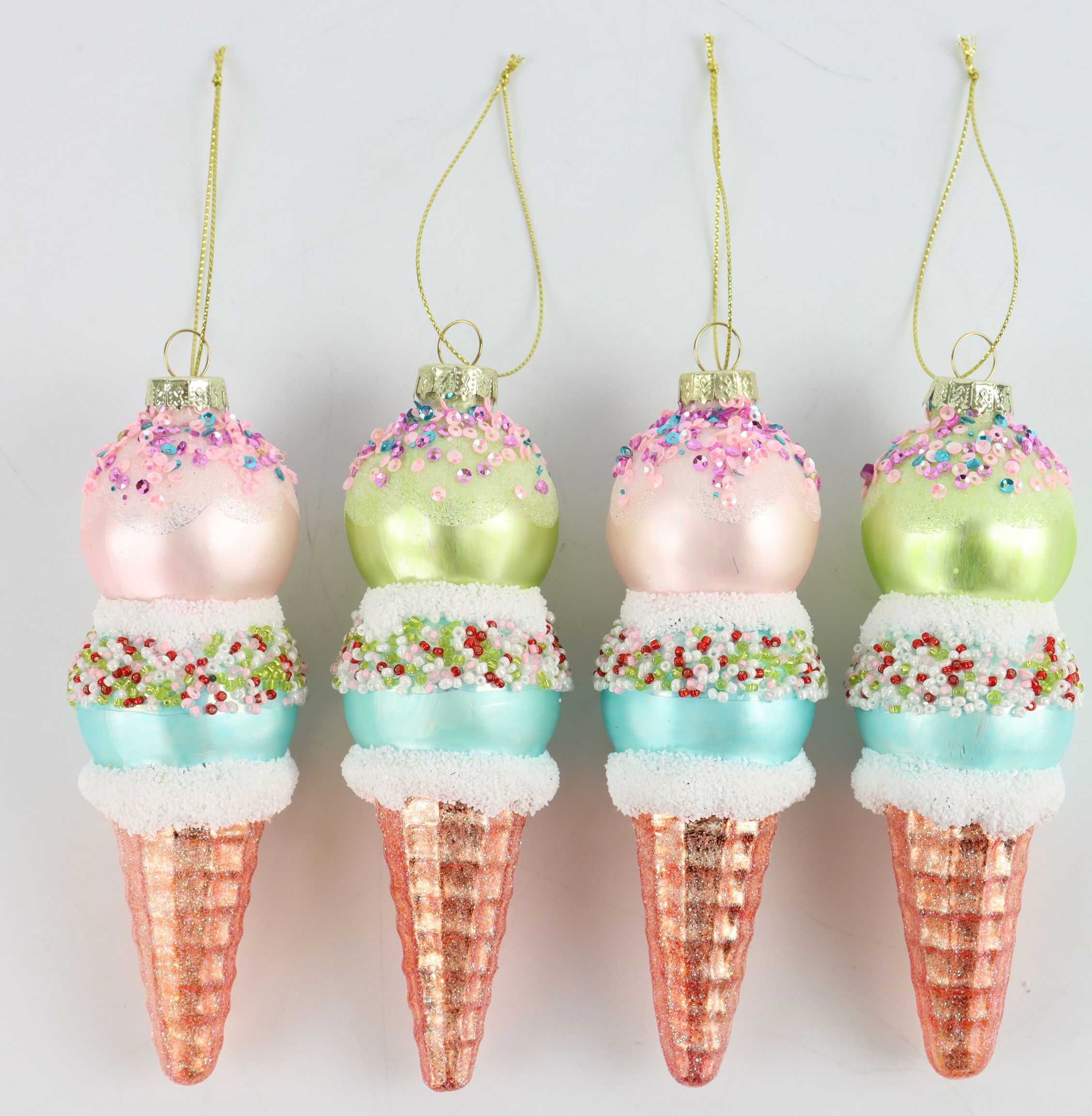 Whether your customers are looking for something original to decorate their own living spaces or a gift for style-conscious friends and family, they will appreciate the "Icecream" glass ornament set.