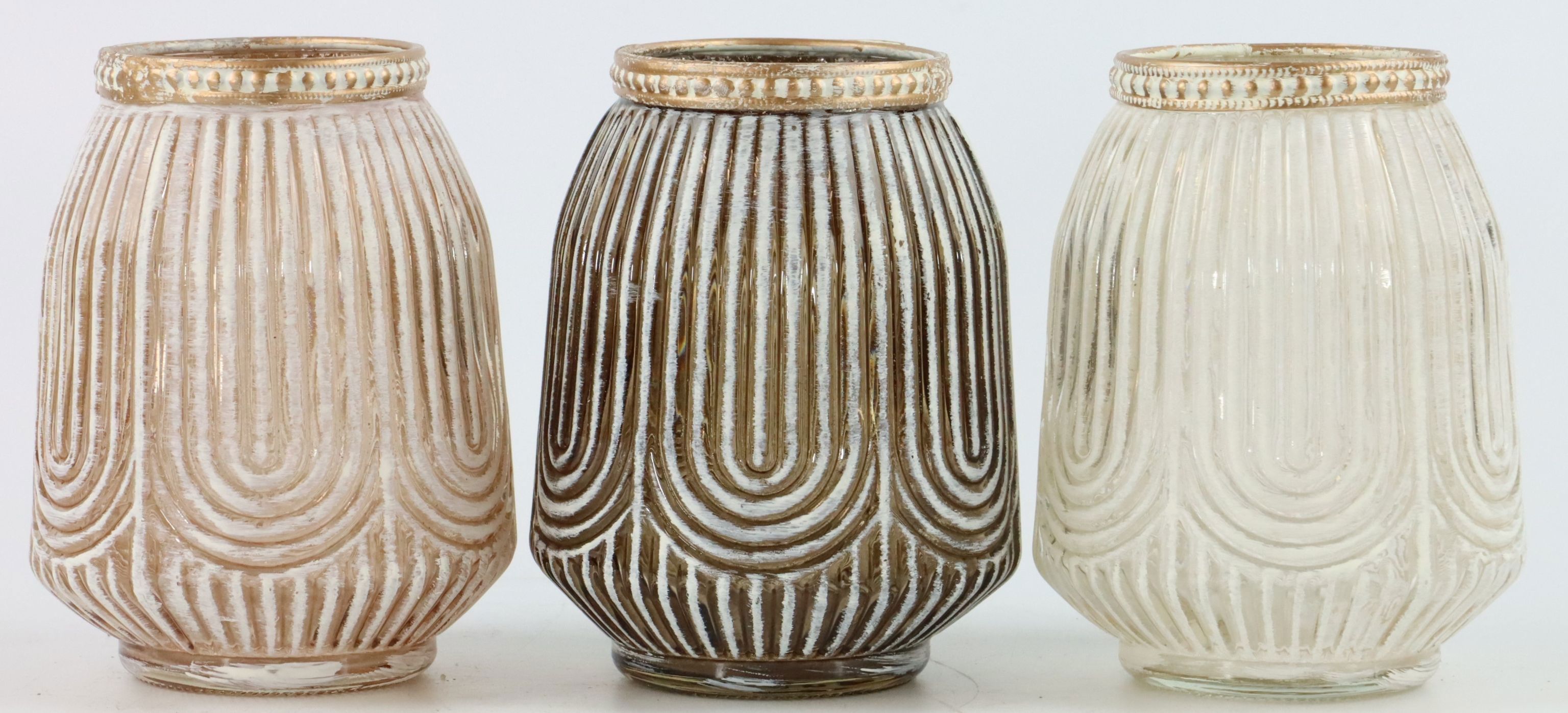 - 3-piece set of vases/votive candlesticks in natural colours