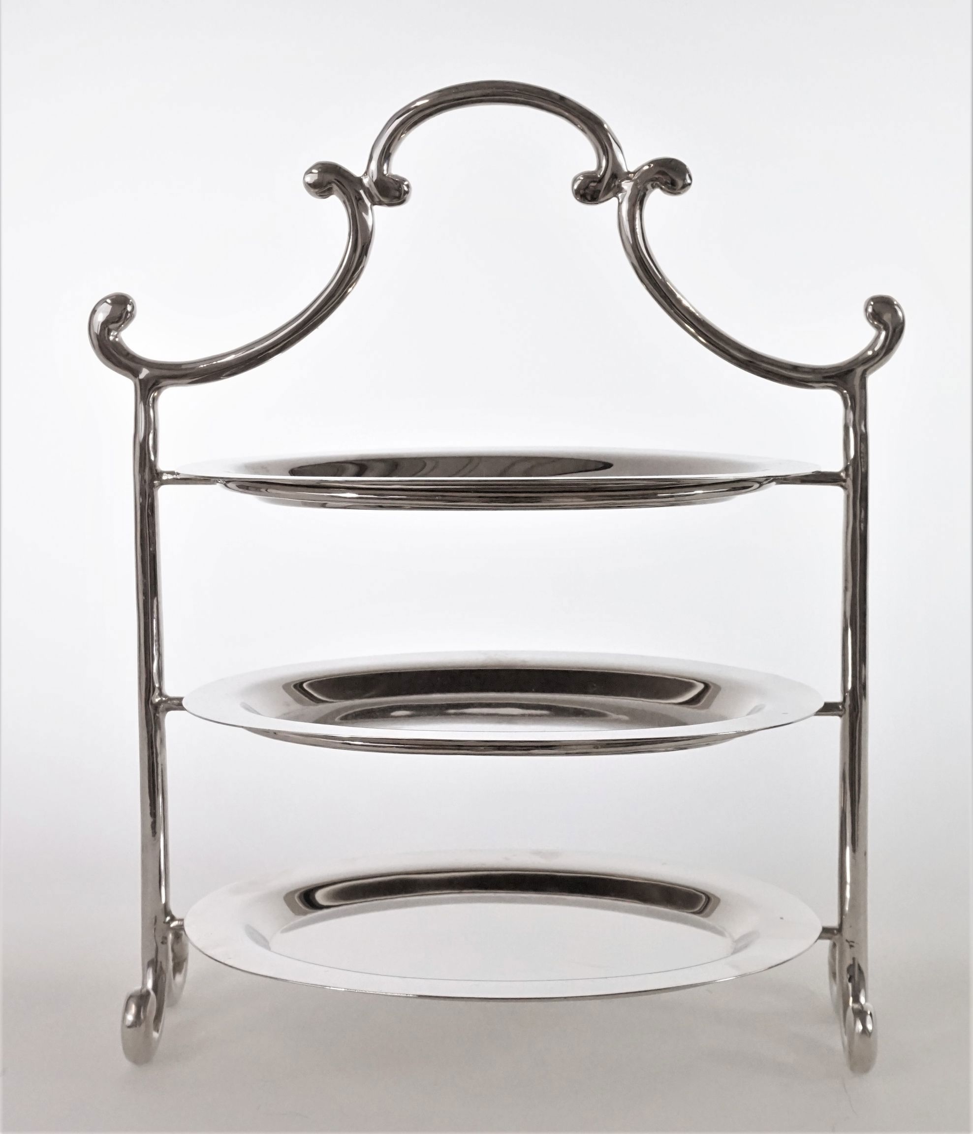 Discover the timeless beauty and functionality of the ETAGERE "CLASSICO". With its elegant silver design, this three-tier etagere not only perfectly showcases your culinary creations, but also enhances any ambience. Whether for the home or lifestyle retail sector - the "CLASSICO" etagere is the ideal product to enrich your customers' shopping experience.