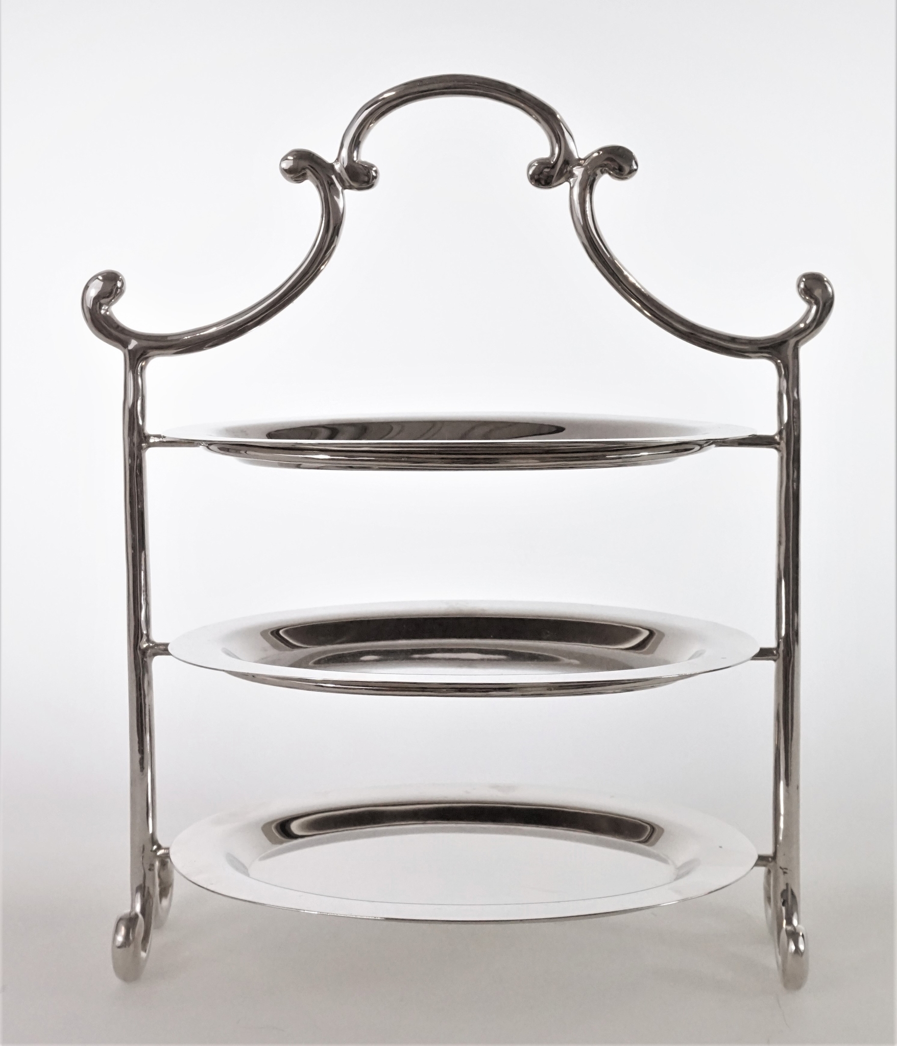 - Elegant, silver design with three levels for versatile presentation options