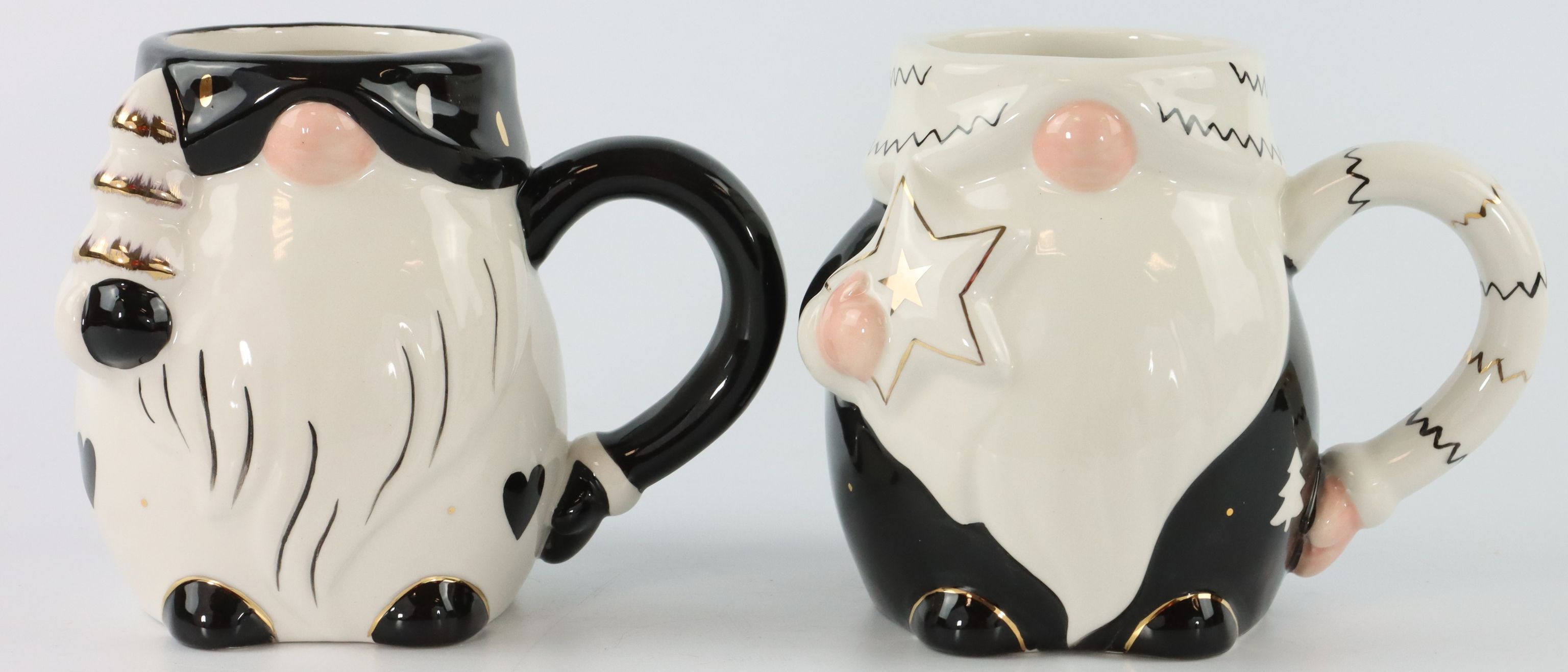 Each mug, with a height of approx. 14.5 cm, radiates a charming simplicity reminiscent of traditional Nordic gnome motifs. The simple black and white colour scheme fits perfectly into any modern kitchen or living room and adds a touch of winter cosiness to any decor. These mugs are not only eye-catching, but also practical for enjoying hot drinks in the colder months. Whether for a hot cocoa in the morning or a soothing herbal tea in the evening - the mugs are made from high-quality ceramic and are both microwave and dishwasher safe, making them ideal for everyday use.