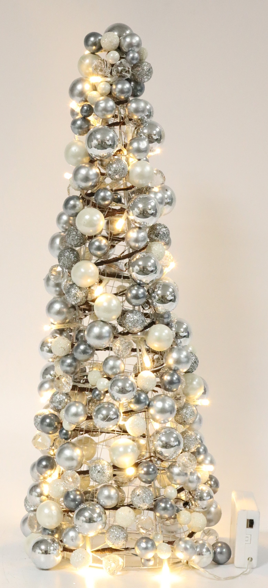 The "Festival" LED illuminated tree impresses with its elegant silver-white colour scheme, which can be harmoniously integrated into any existing decoration. Thanks to LED technology, it offers an energy-efficient and long-lasting lighting option that creates a magical atmosphere at all times. Simply place the battery-powered tree where it makes the best impression without having to worry about annoying cables or power connections. The flexibility of this decorative Christmas tree offers countless possibilities for a creative product presentation in your shop.