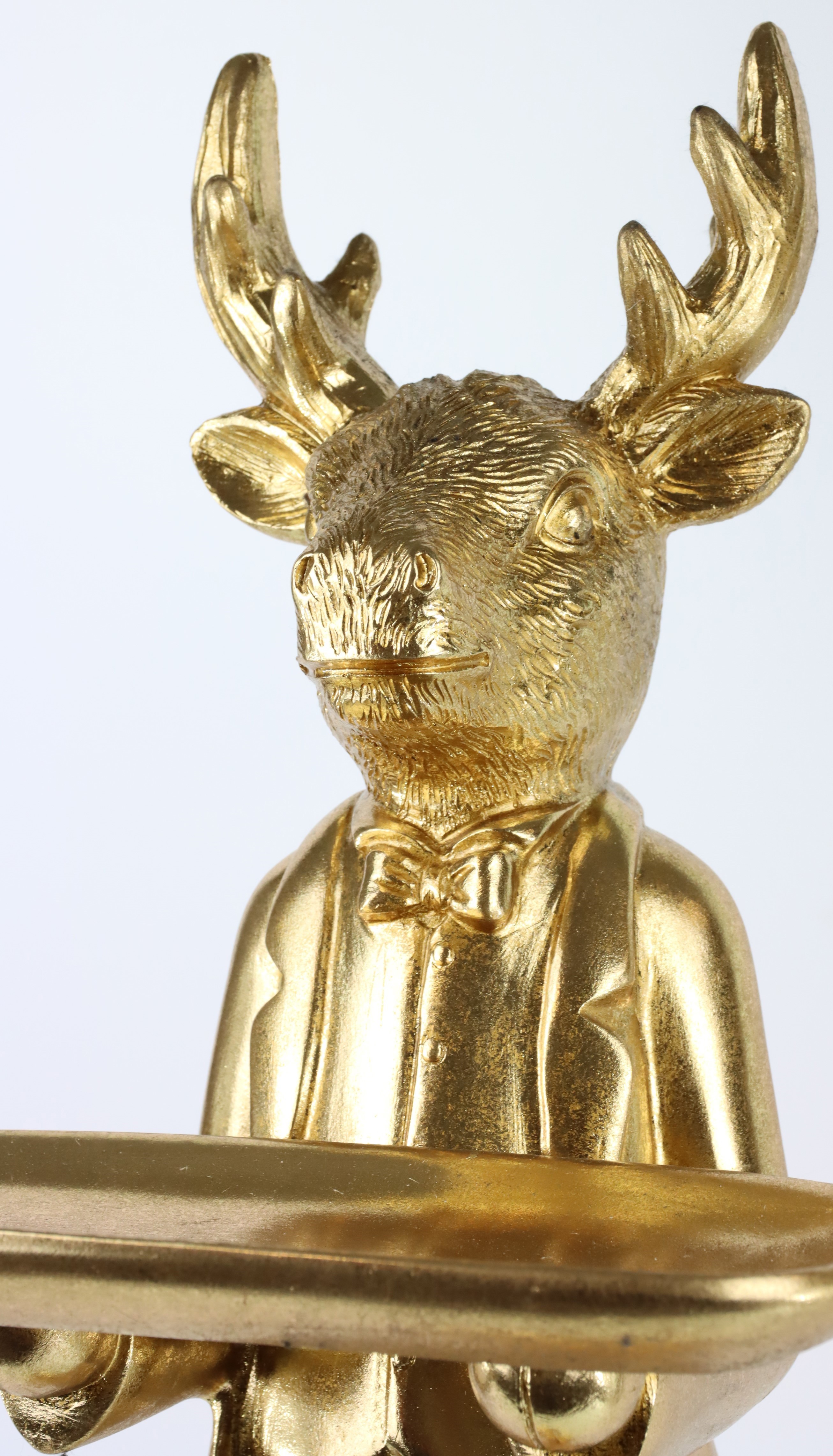 The design of the butler in deer look is characterised by a fine aesthetic that embodies the energy and strength of this majestic animal. At the same time, it retains its noble demeanour and blends harmoniously into the overall picture of a stylish decoration.
