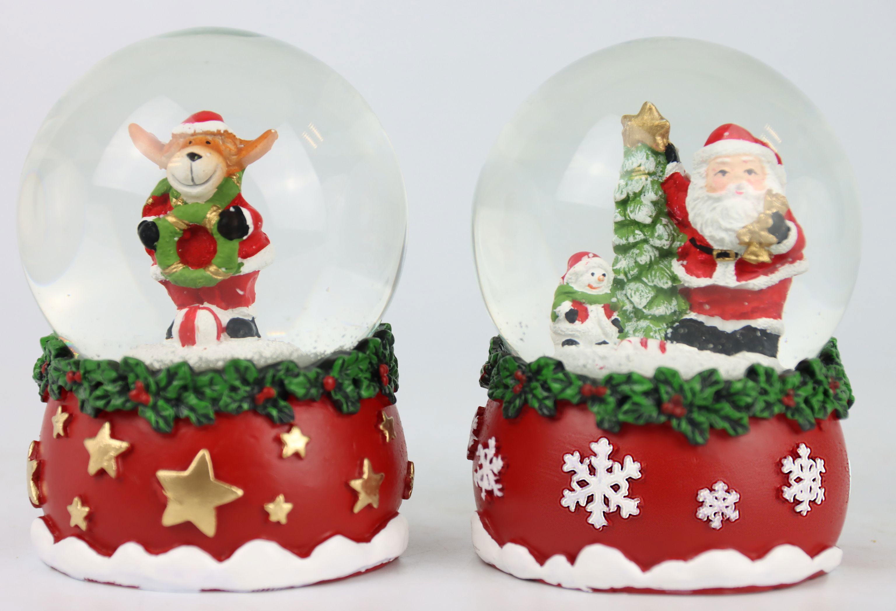 With a height of approx. 9 cm, these snow globes are the perfect addition to festive decorations in shops, shop windows or private living rooms. Their compact size allows them to be effortlessly integrated into existing arrangements or placed on shelves and sideboards as eye-catchers. Thanks to the sturdy workmanship and the use of glass, this set is not only a visual highlight, but also safe and durable.