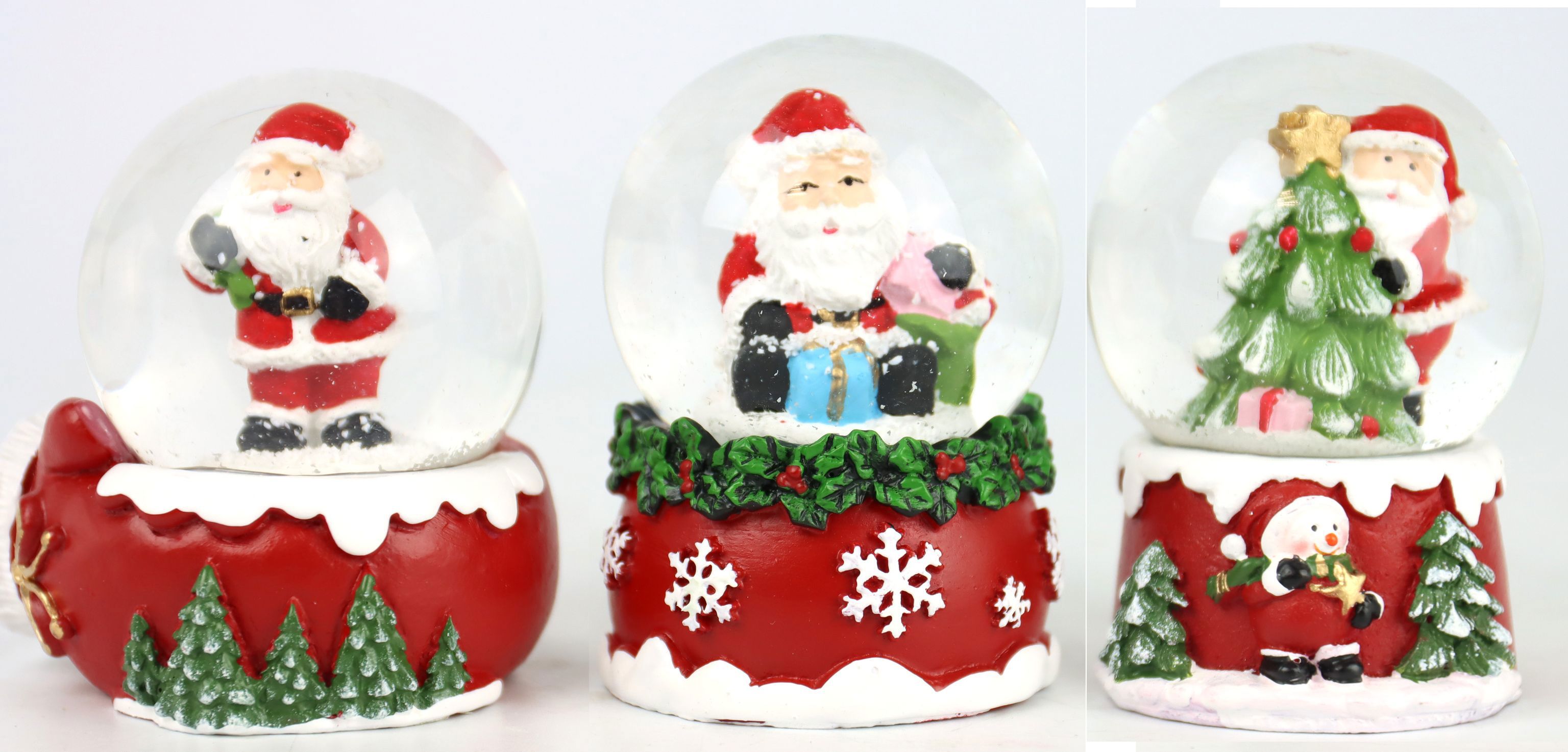 Christmas is just around the corner and it's time to offer your customers something very special. The "Santas Swirl" snow globes are just the right product to bring festive magic into any home. This exquisite 3-piece set not only impresses with its detailed workmanship made of high-quality polyresin and clear glass, but also with its enchanting motif, which shows Father Christmas in all his splendour.