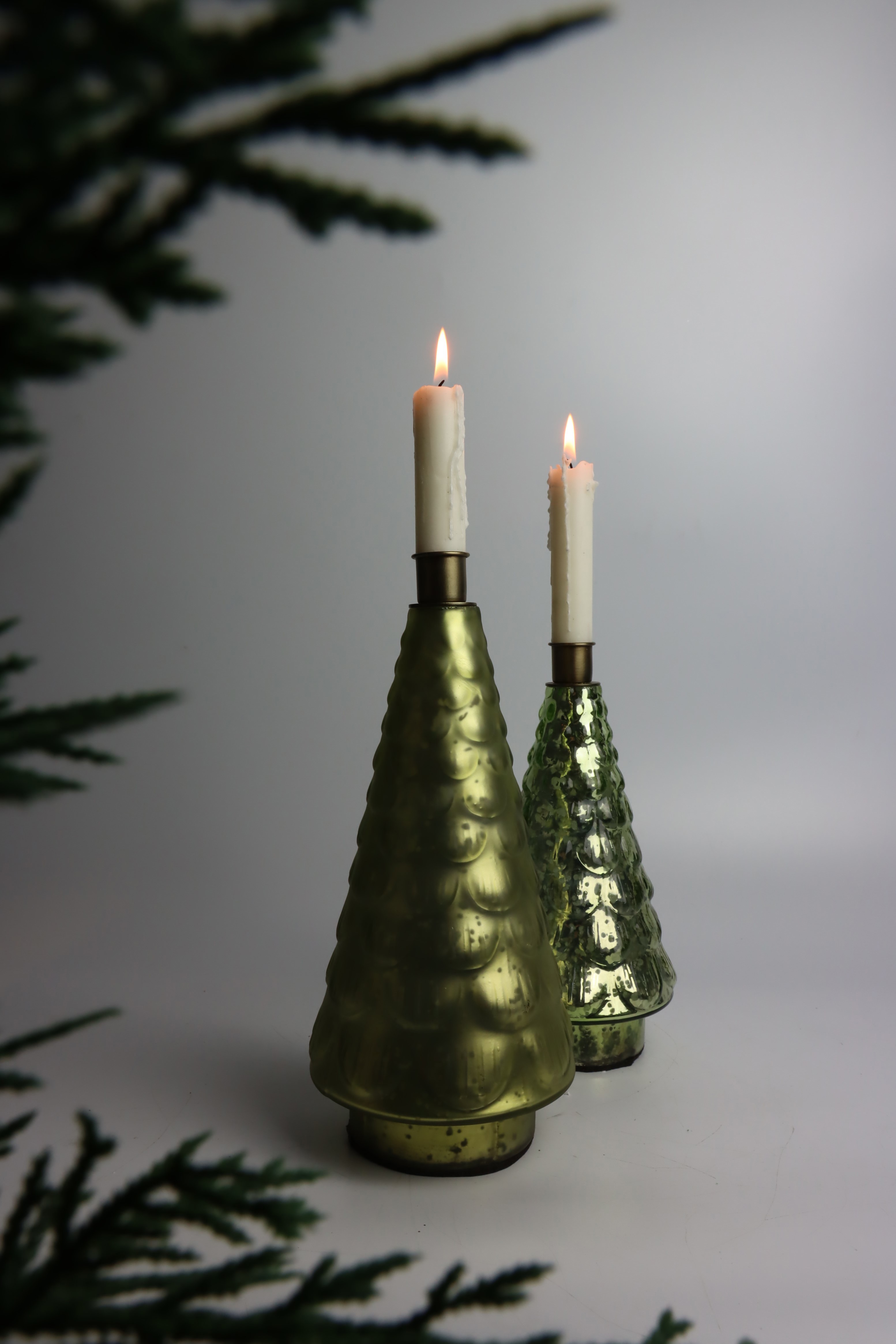 Discover the "Silva" tree chandelier in our online shop. This elegant 2-piece set impresses with its high-quality glass workmanship and is a real eye-catcher. Measuring 27 cm and 23 cm, these tree candlesticks are a stylish addition to any Christmas decoration and create an atmospheric highlight on any Christmas tree. Ideal for stationary retail in the home and lifestyle sector.