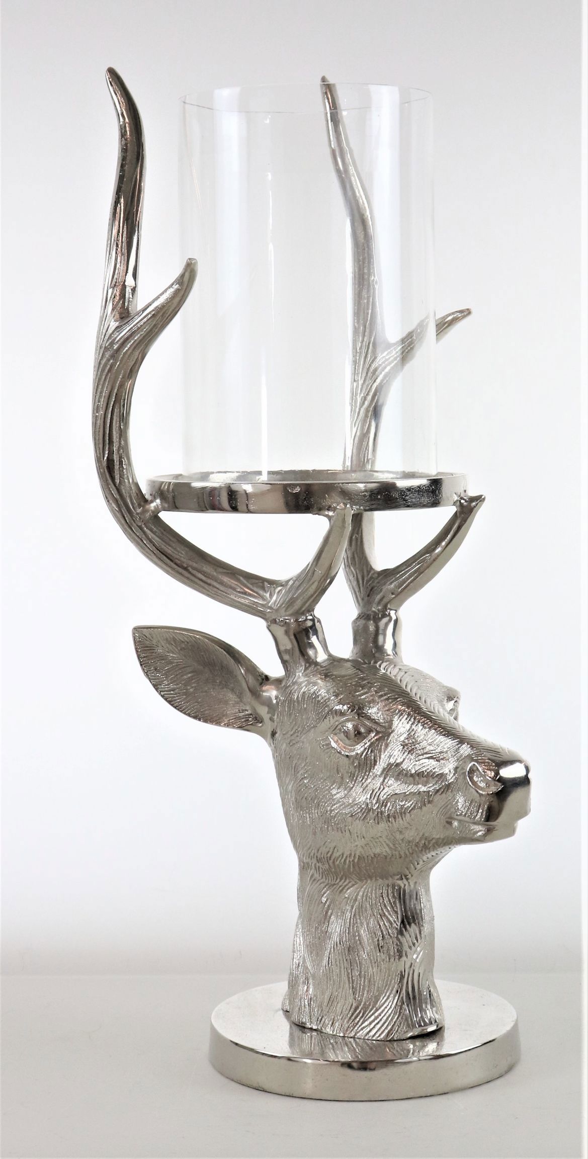 Our "Stag" lantern is the perfect combination of functionality and design. Made from robust aluminium in silver and elegant glass, it provides pleasant and atmospheric lighting that creates a cosy atmosphere. With a size of around 49 cm, it is an eye-catcher that draws attention to itself in any room.