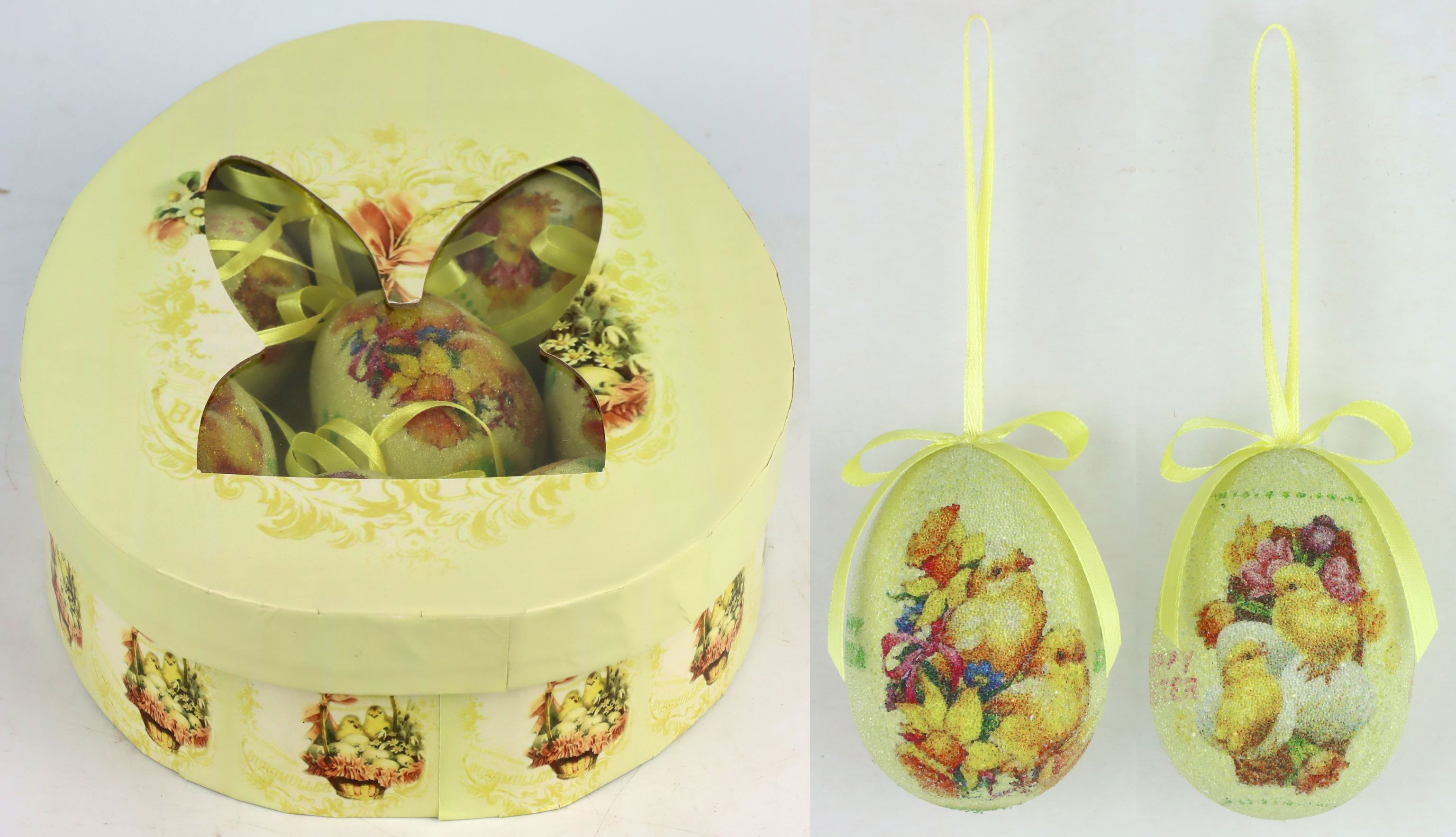 High quality polyfoam has been used to make the eggs, a material that is not only robust but also lightweight, making this product a durable and practical choice for any Easter decoration. The box, made from sturdy cardboard, completes the ensemble while providing a way to safely store and display the eggs. This combination allows your retail customer segment to purchase a product that is not only aesthetically pleasing, but also functional and easy to care for.