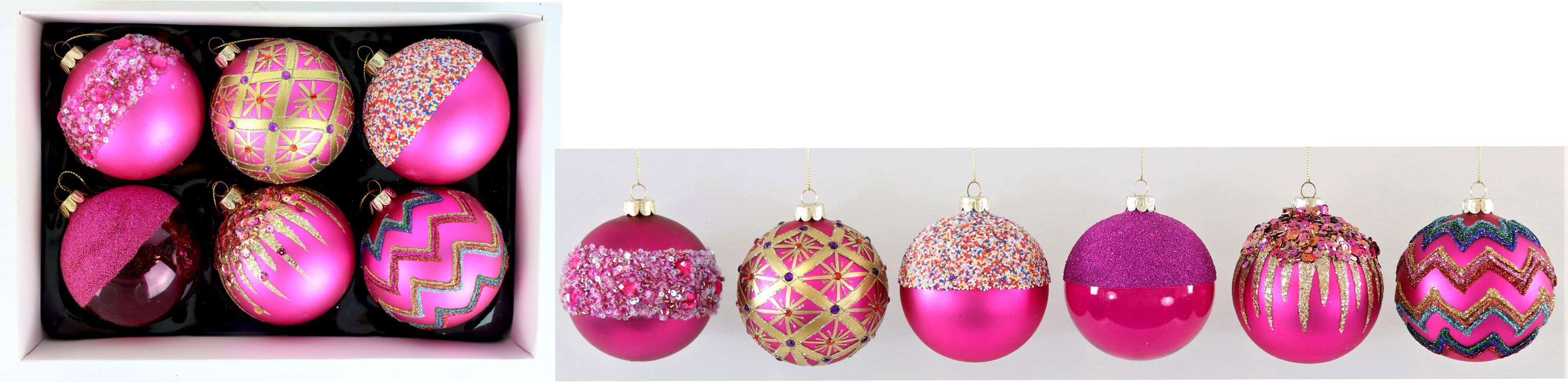 ENEnjoy the magic of a mesmerising Christmas season with our distinctive "Purple" glass baubles. This 6-piece set, item number 4416, is a masterfully crafted collection whose exquisite designs and vibrant pink and purple hues add a warm, distinctive flair to any room.