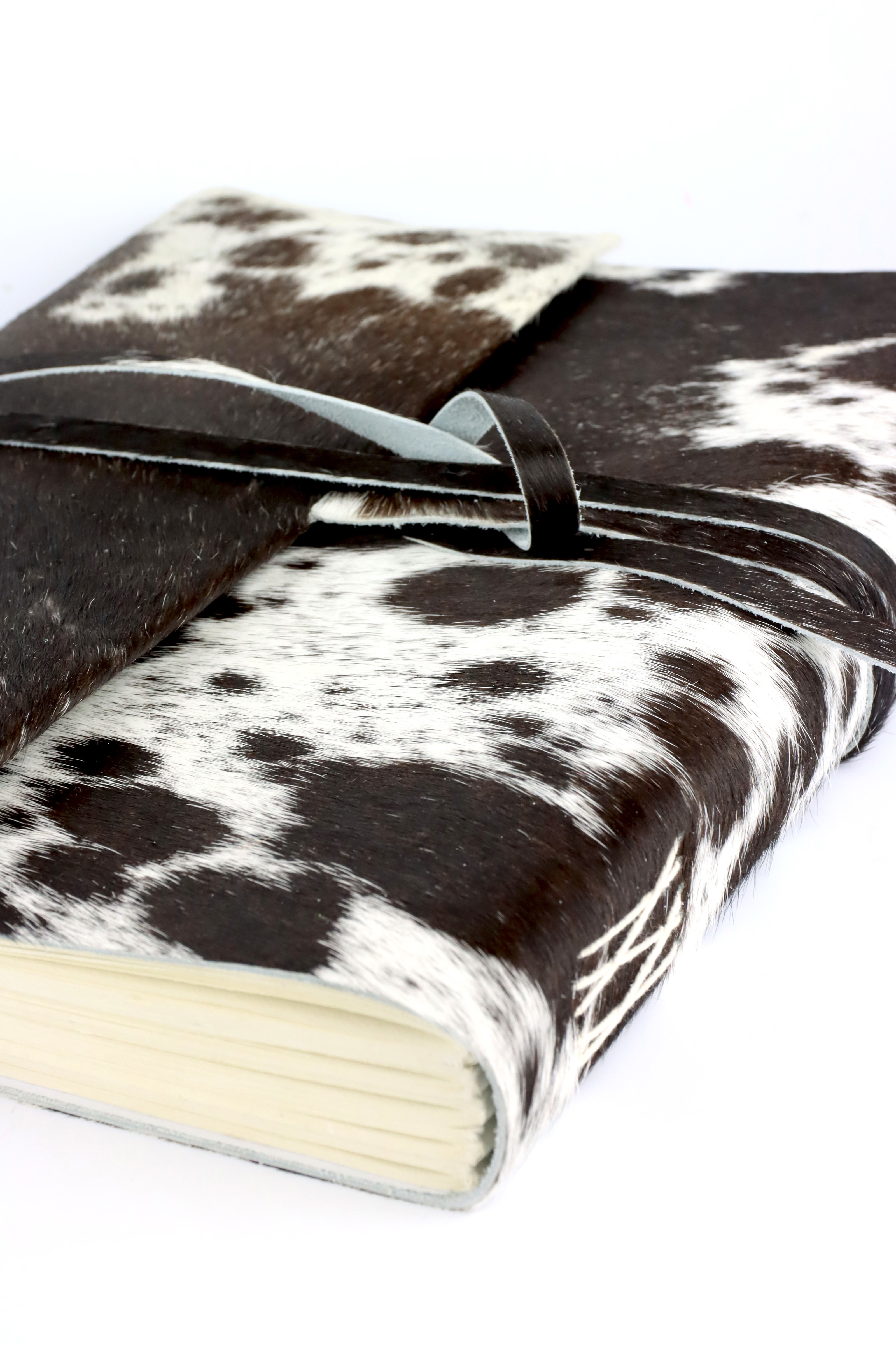 The "Davos" notebook impresses with its unique yet rustic design in a cowhide look. Made from high-quality goatskin and genuine leather, it impresses with its unique feel and authenticity. The size of approx. 33 cm makes it an ideal companion for the desk, the home office or when travelling.