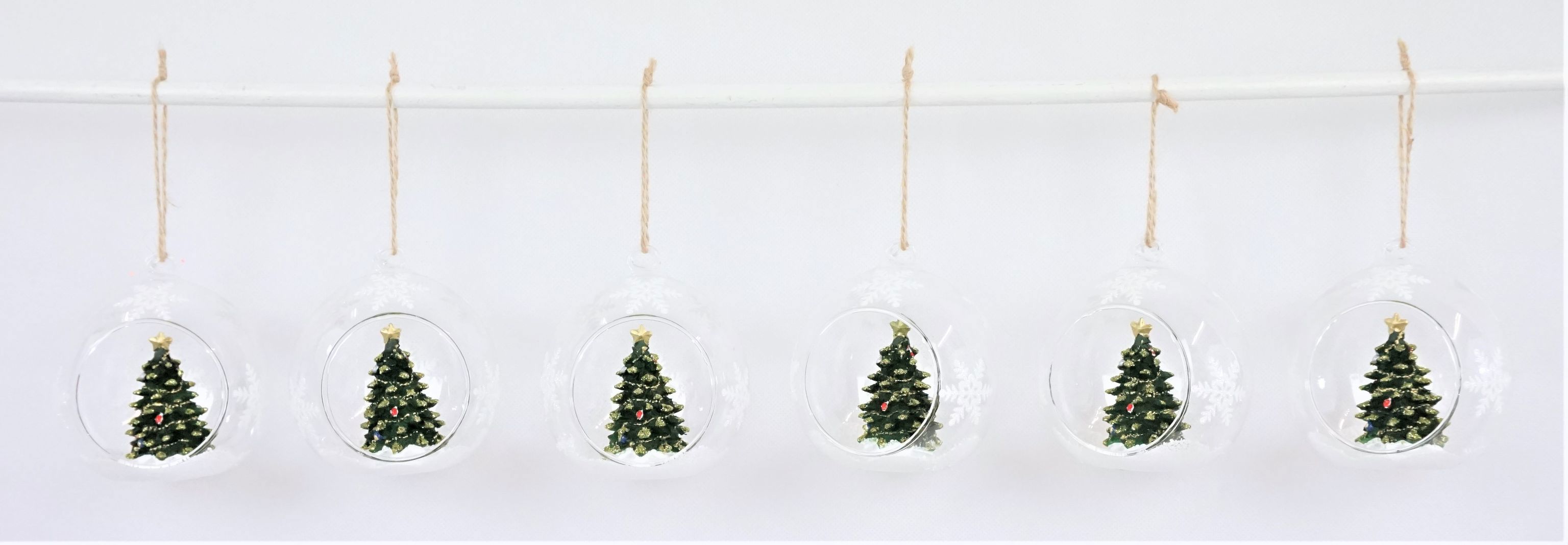 - Six-piece set of "Christmas tree" glass baubles (item number 8119)