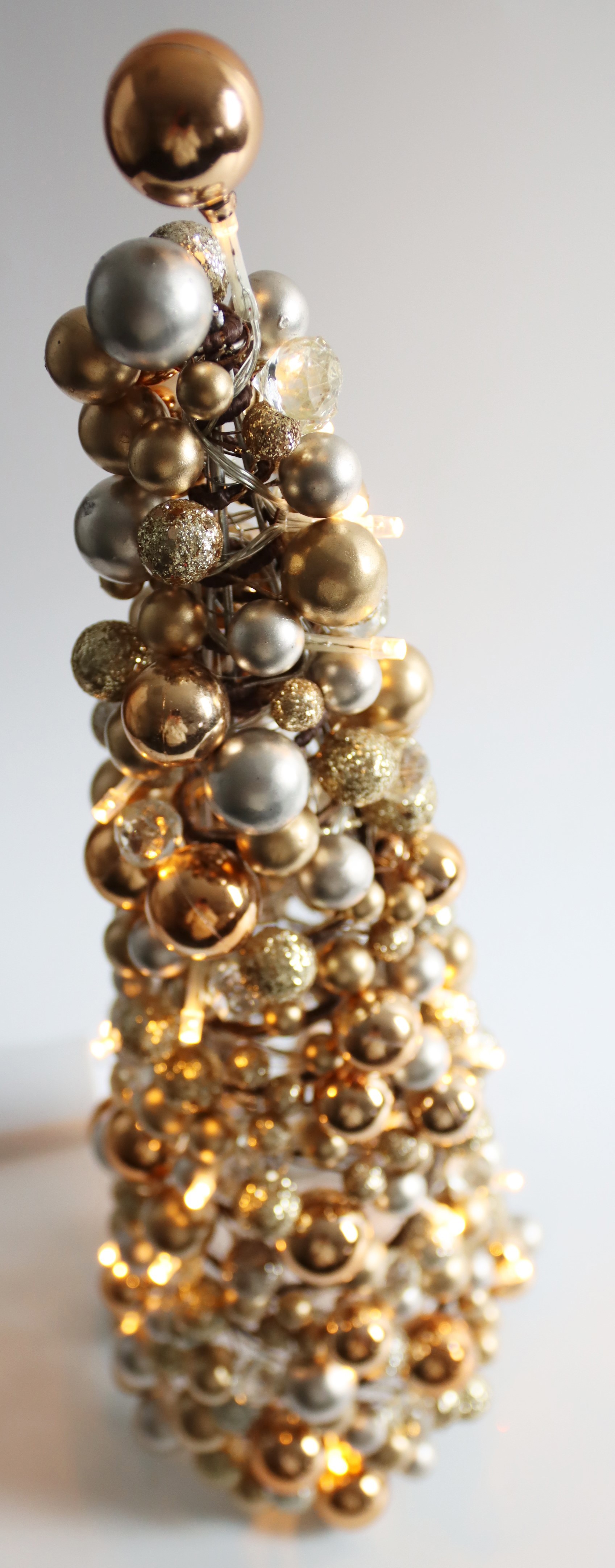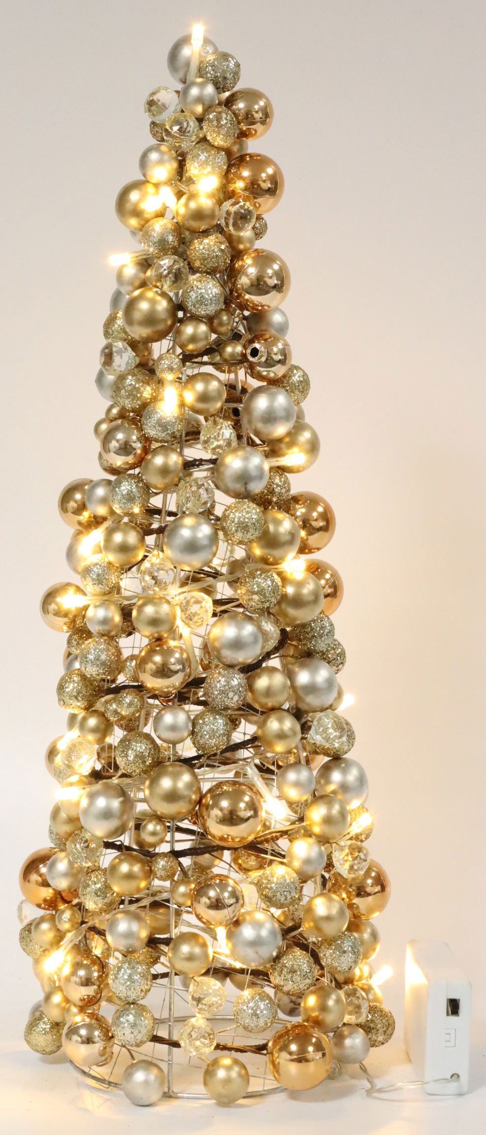 The LED light tree is around 48 cm high, a perfect size for a table decoration or in combination with other Christmas decorations. With its gold-coloured shimmer, it reflects the light of the LED, creating a Christmas sparkle that brings the warmth and magic of the festive season into your home.