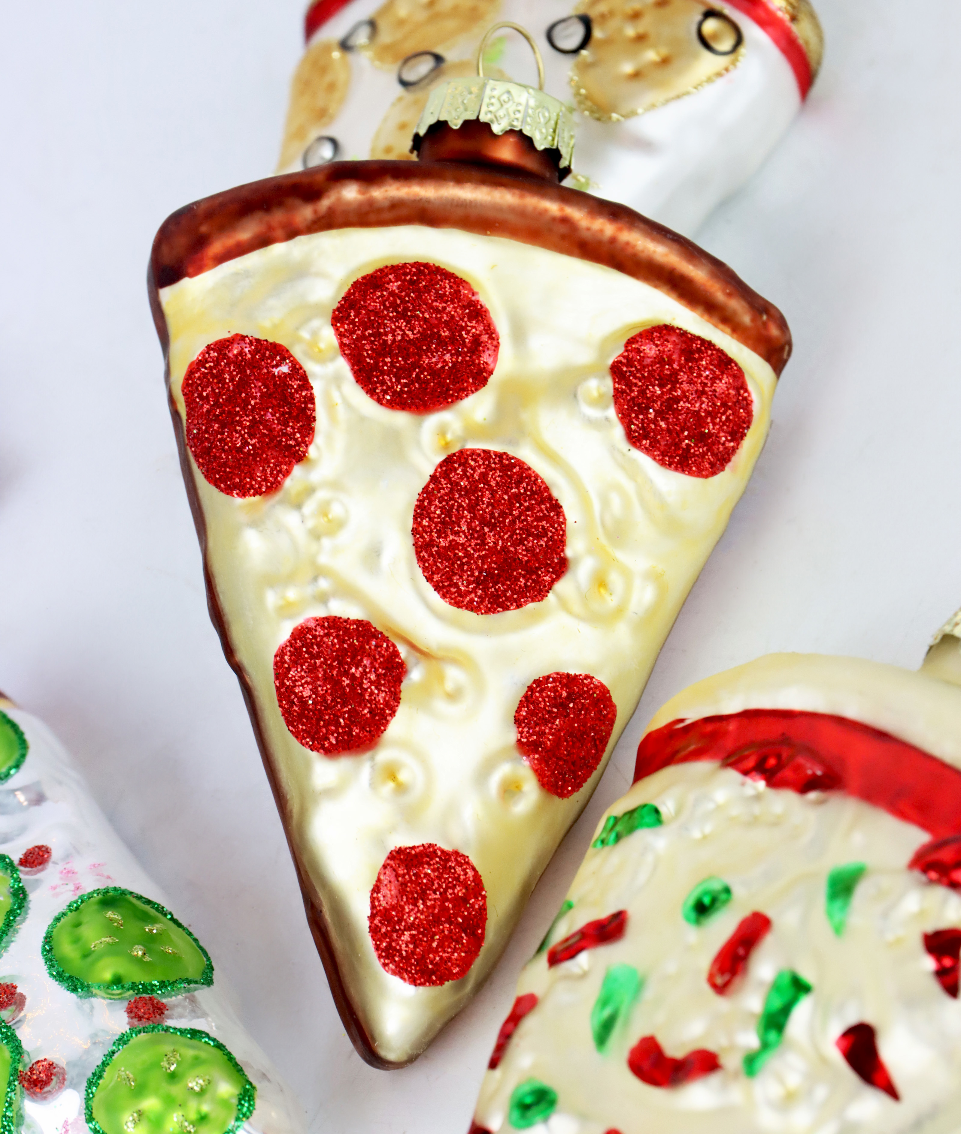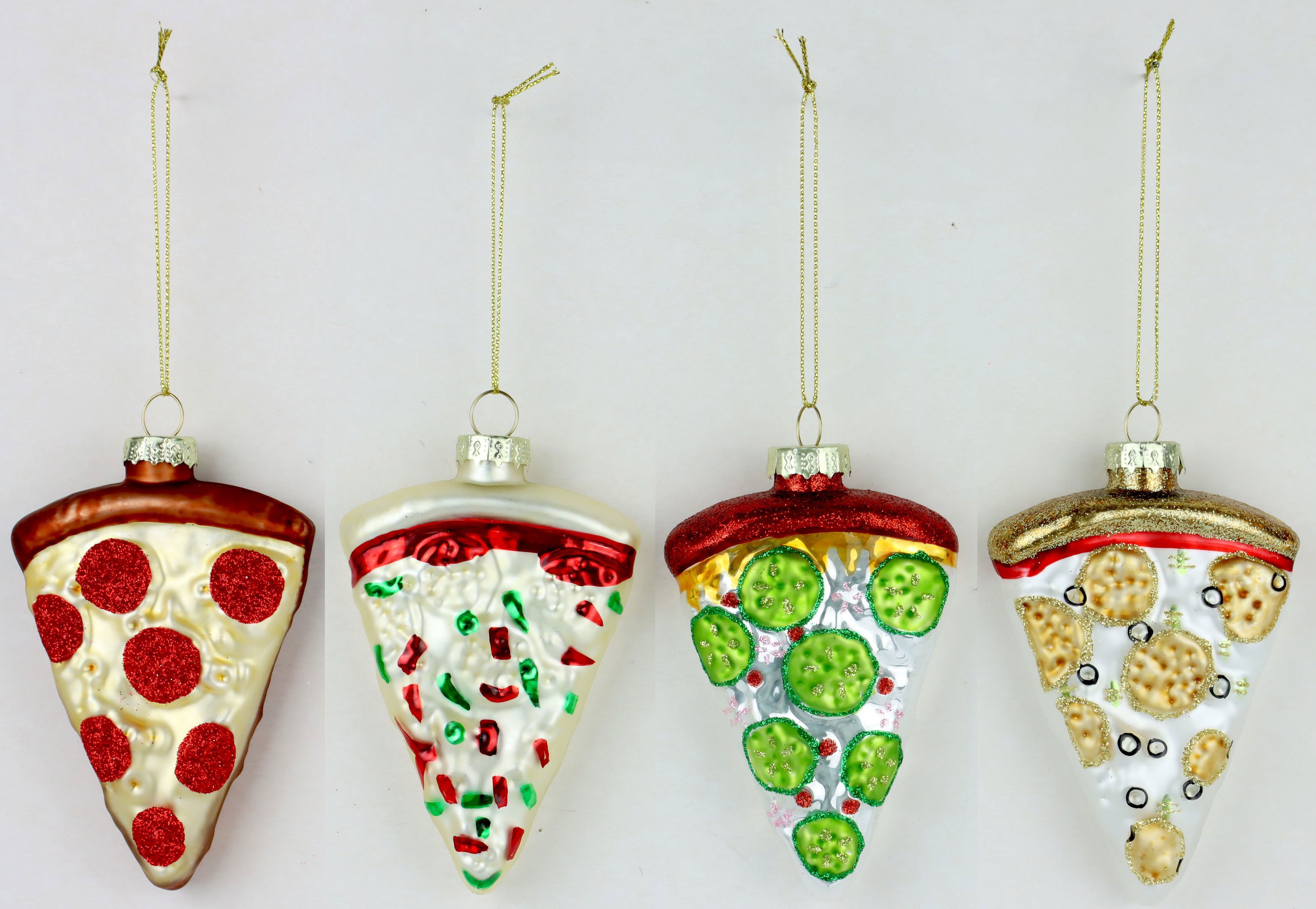 ENAdd a touch of originality and creative flair to your Christmas celebrations with our GLASSCHMUCK "PIZZA" S/4, item number: 8631. This unique 4-piece set of pendants impresses with its playful aesthetics and is sure to delight all pizza lovers, retailers and resellers alike.