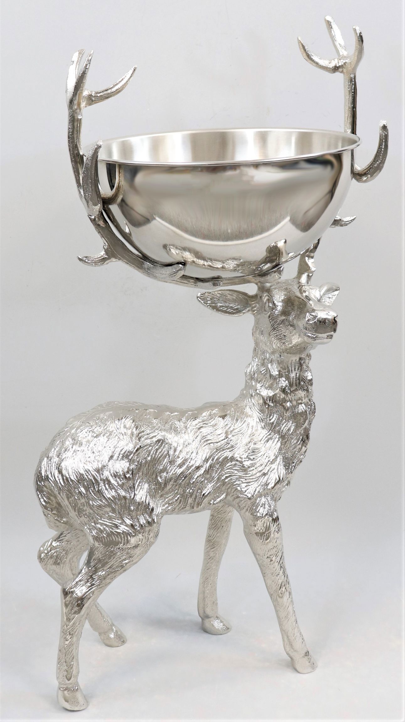 The HIRSCH MIT SCHALE, ideal for the autumn and winter season, is an exclusive piece that brings naturalness and style to your premises. Made from high-quality aluminium and finished in elegant silver, the product measures an impressive 81 cm. The size and elegant design make the product a real eye-catcher.
