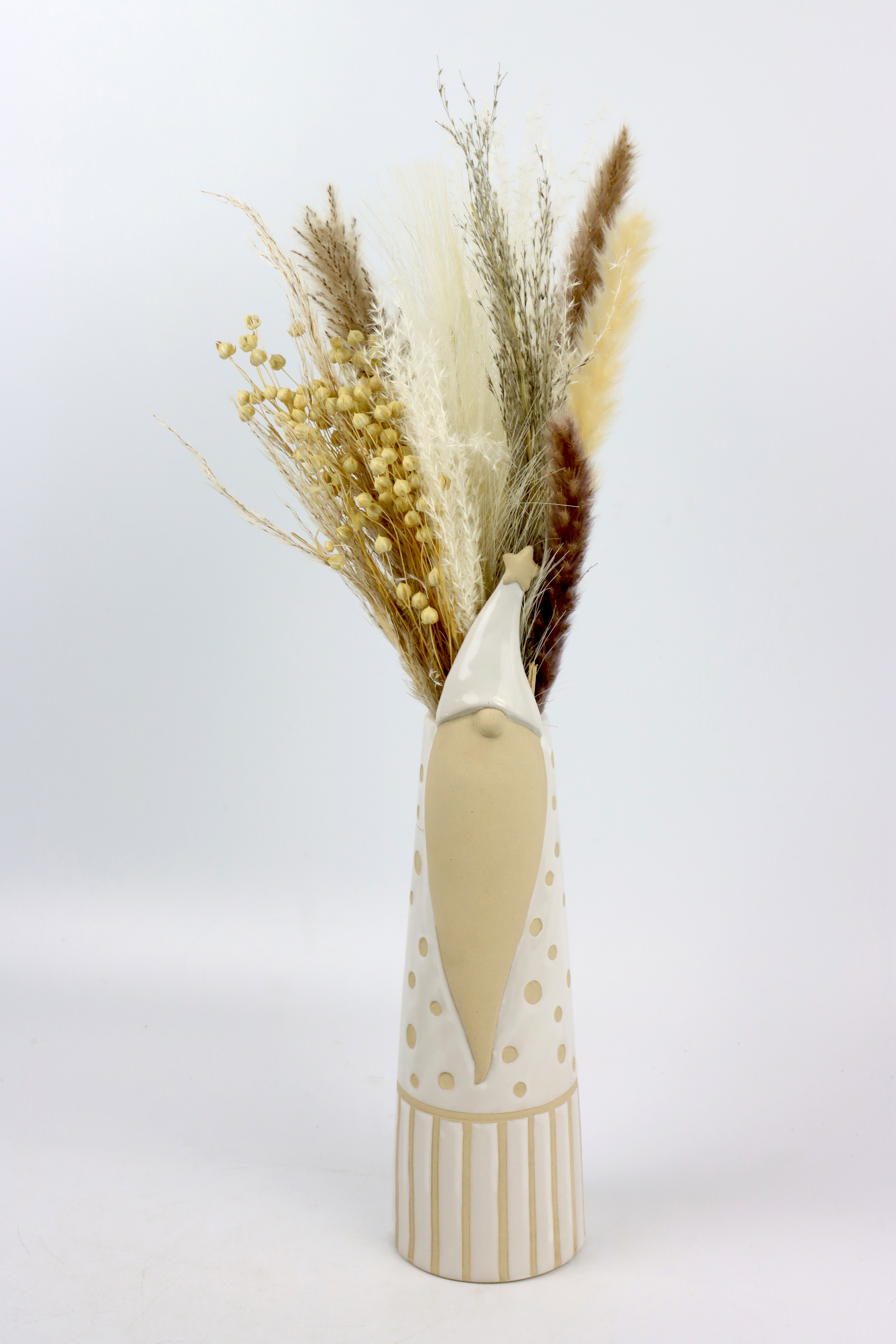 Descubre el jarrón "Papá Noel" (nº de artículo 4905), un elemento decorativo especial que completará con estilo tu decoración navideña. Este jarrón de cerámica blanca es más que un simple recipiente: es una expresión de elegancia y festividad, perfecta para la venta al por menor en el sector del hogar y el estilo de vida. Con una impresionante altura de aproximadamente 34,5 cm, el jarrón ofrece espacio suficiente para creativos arreglos florales que pondrán a sus clientes en un mágico estado de ánimo invernal.