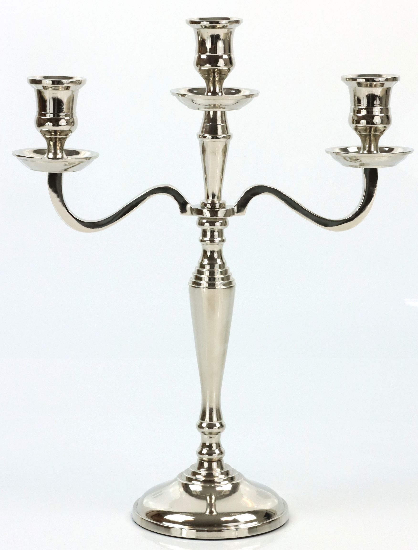 Añada un toque de elegancia y belleza atemporal a su gama de venta de artículos de papelería en el sector del hogar y estilo de vida con nuestro exquisito candelabro "CHATEAU". Este candelabro decorativo para 3 velas es el accesorio perfecto para proporcionar a sus clientes acentos de estilo en su espacio vital. Fabricado en hierro niquelado de alta calidad, el candelabro impresiona por su brillante superficie plateada, que añade un toque de lujo a cualquier estancia.