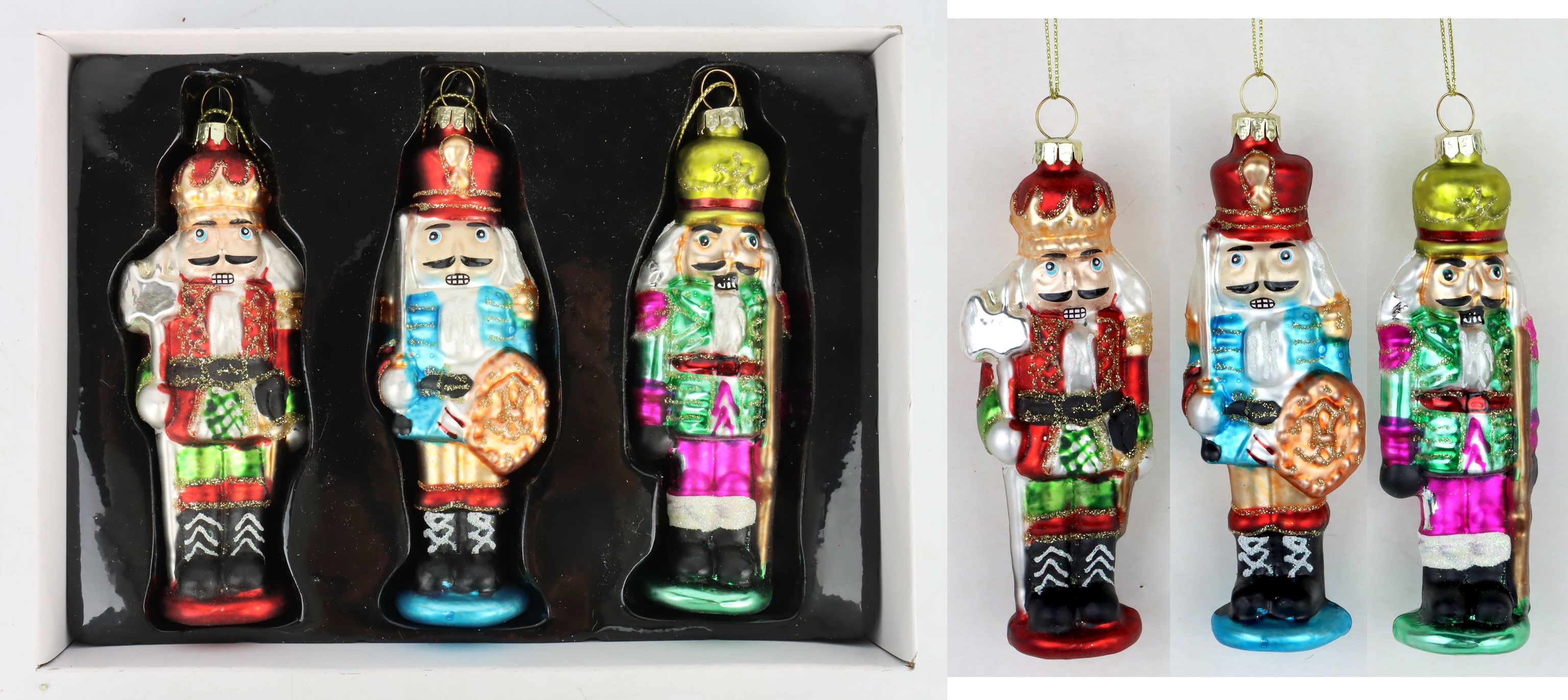 Aumente sus ventas durante la temporada navideña con el set de 3 adornos de cristal "Cascanueces" y ofrezca a sus clientes la oportunidad de decorar su espacio vital con elementos decorativos elegantes e inusuales. Haga que la Navidad sea aún más especial e inolvidable para sus clientes con nuestros adornos de cristal "Cascanueces".