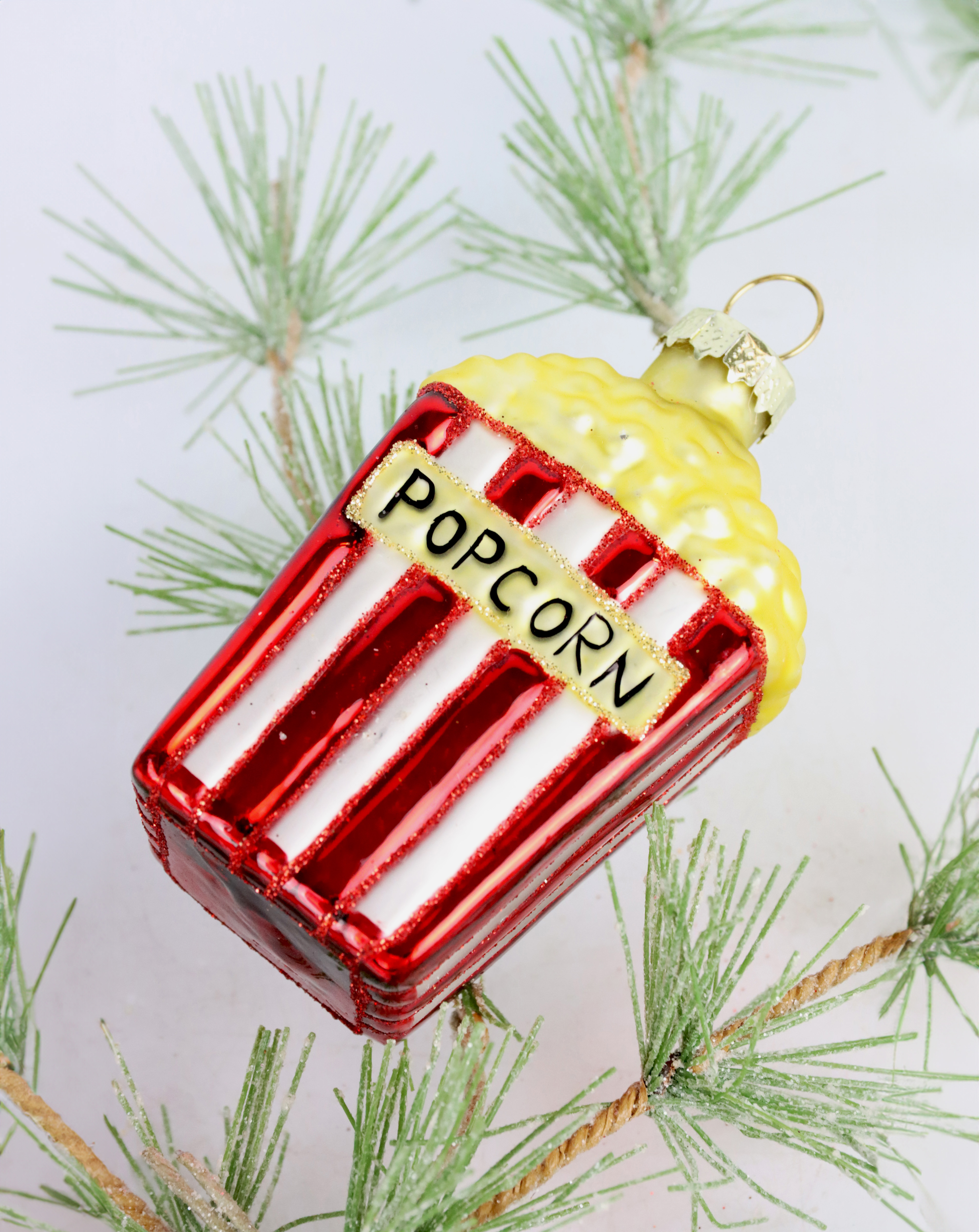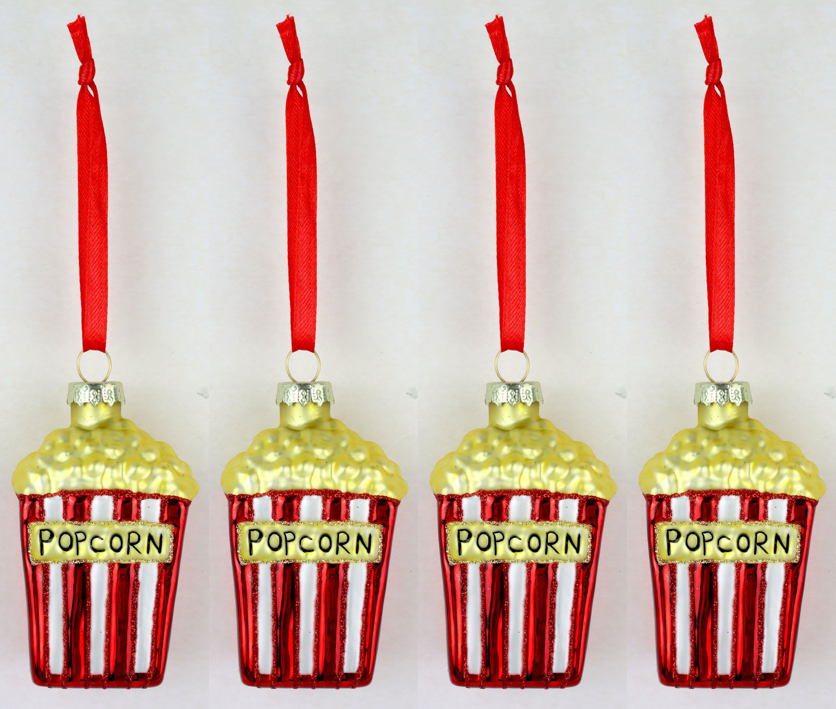 - Juego de 4 piezas de adornos de cristal "Popcorn" como adornos para el árbol