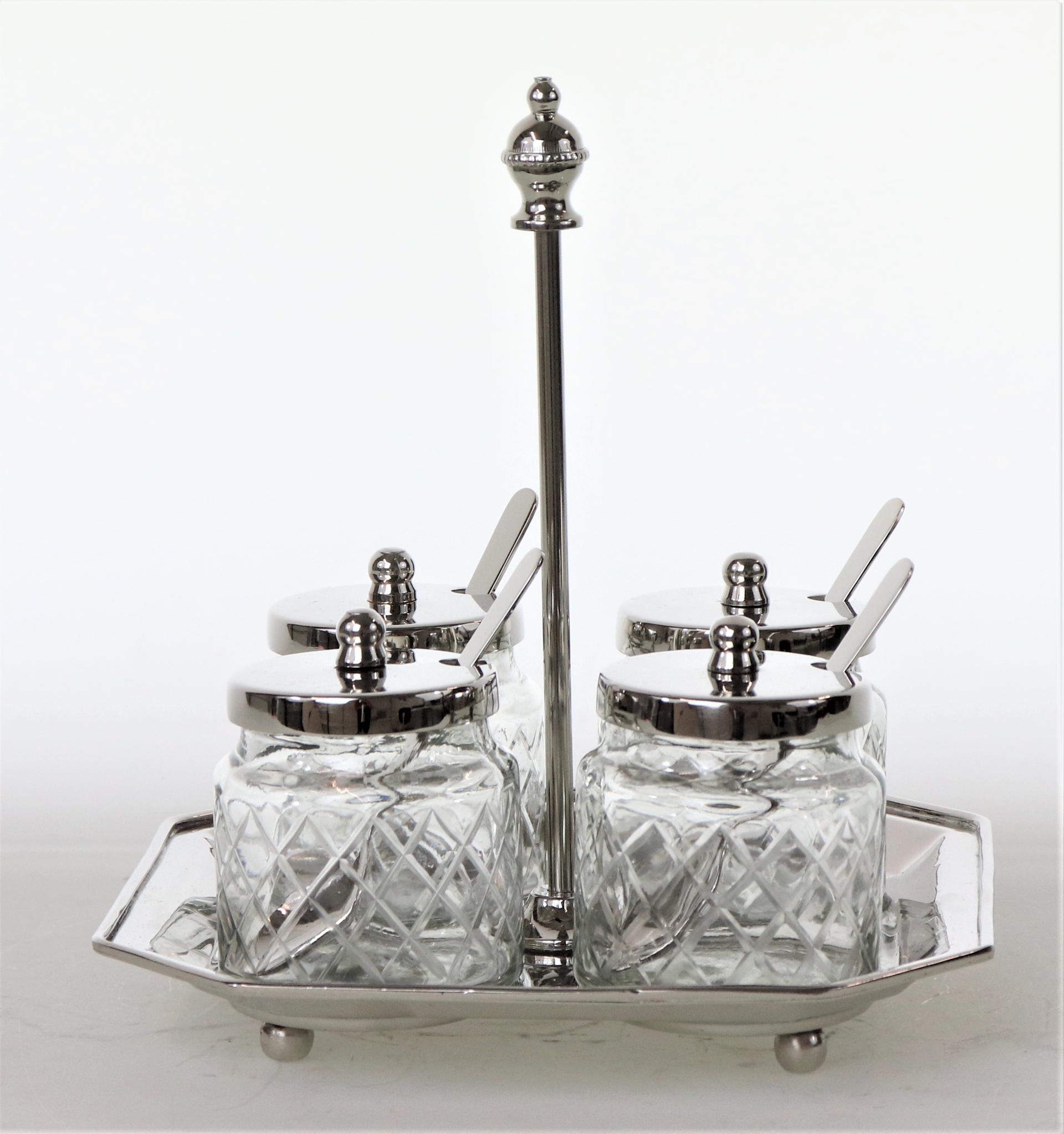 Ajoutez une touche d'élégance et de fonctionnalité à votre assortiment professionnel avec l'ensemble M.T. "Table" set de 5 pièces. Cet ensemble exclusif se compose de quatre sucriers élégants dans un ton argenté raffiné, qui s'harmonisent parfaitement avec le plateau correspondant. Que ce soit pour la table basse ou pour un intérieur stylé, les sucriers ne sont pas seulement pratiques, ils sont aussi un point fort esthétique.