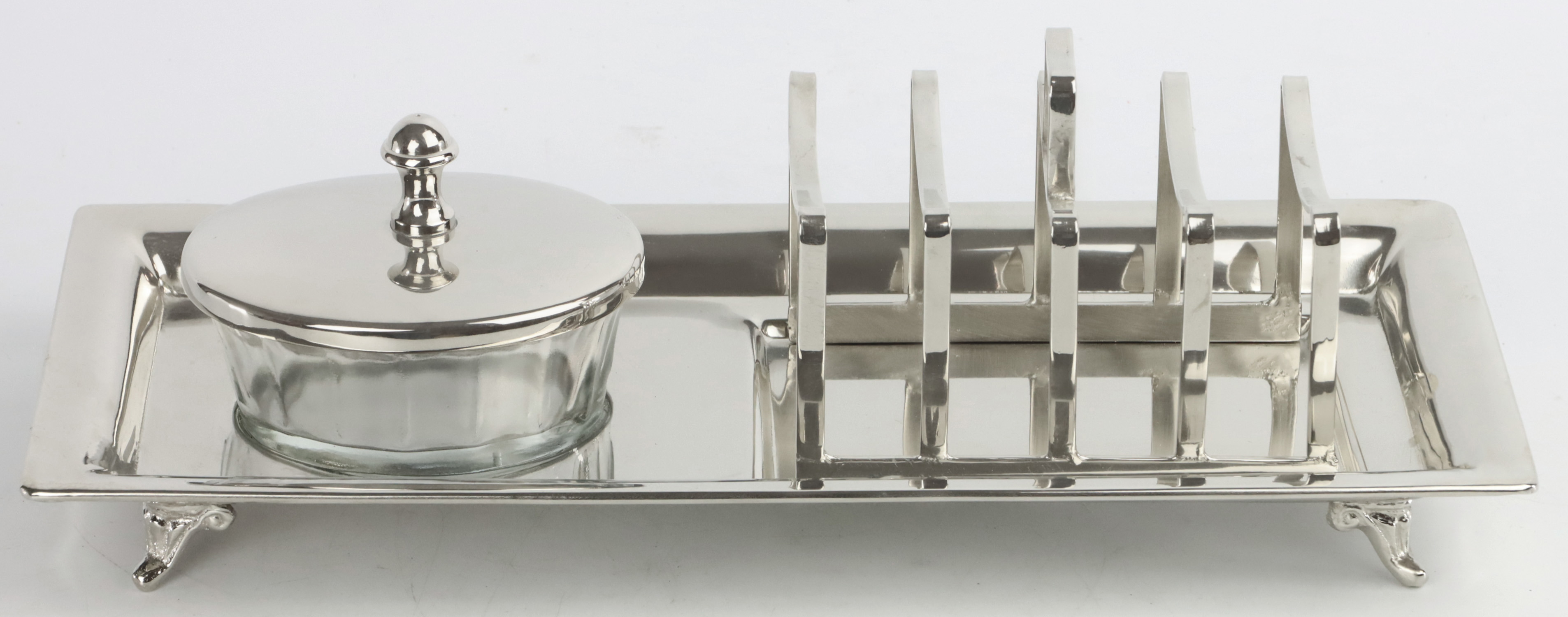 Commencez votre journée avec style grâce à notre set BREAKFAST "TABLE" S/3 de qualité supérieure en argent classique, référence 3101. Ce set exclusif pour le petit-déjeuner a été spécialement conçu pour les détaillants stationnaires exigeants dans le domaine de l'habitat et du style de vie. Il allie une élégance intemporelle à une polyvalence fonctionnelle et constitue le complément parfait de tout intérieur moderne.