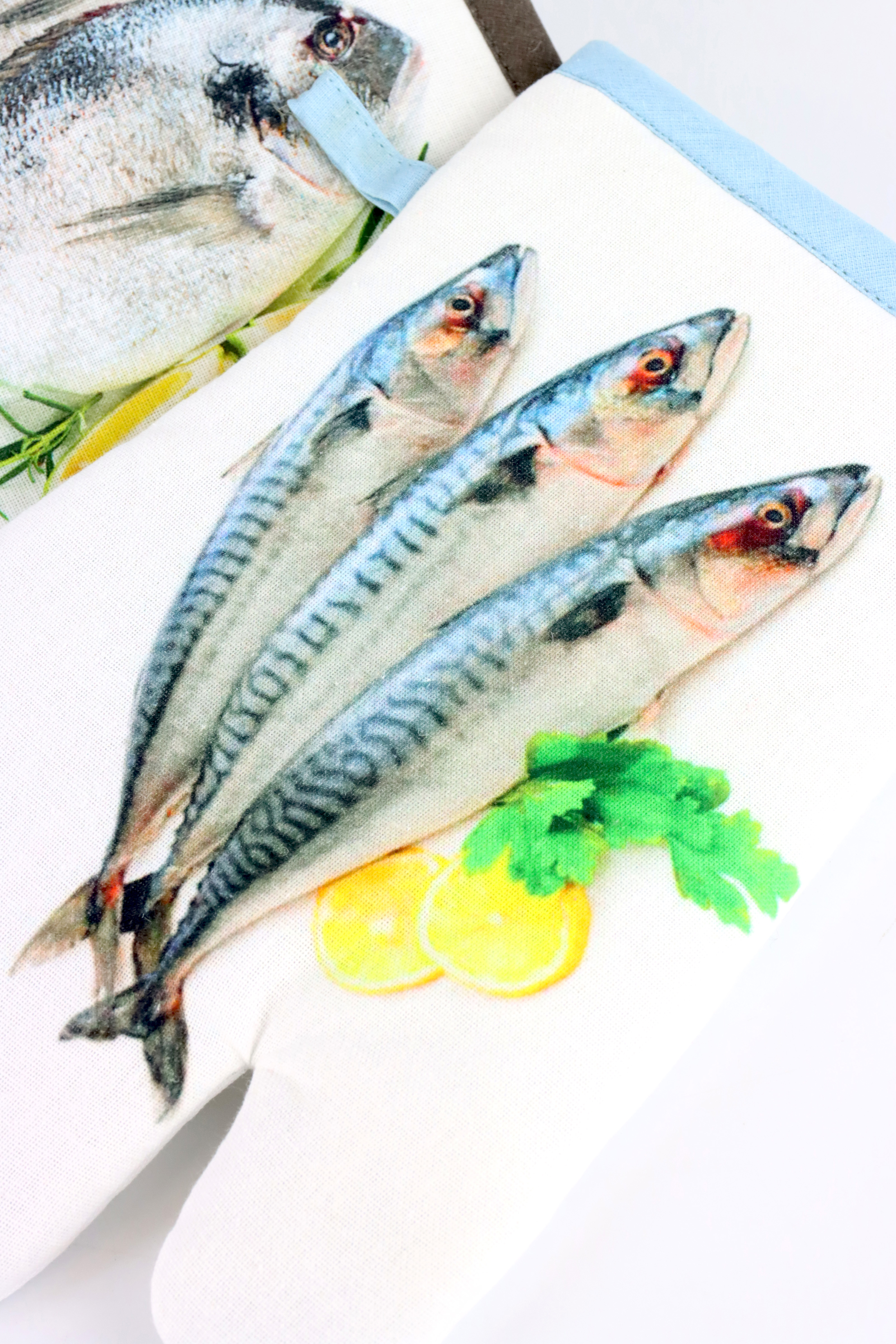 Le motif poisson sur ces gants de cuisine reflète la légèreté et la créativité de la saison printemps/été et en fait une pièce de décoration frappante dans votre cuisine ou un cadeau bien pensé pour vos partenaires commerciaux. Vous pouvez être sûr que ces gants de cuisine ne sont pas seulement fonctionnels, mais qu'ils représentent également une déclaration de mode qui impressionnera vos clients.