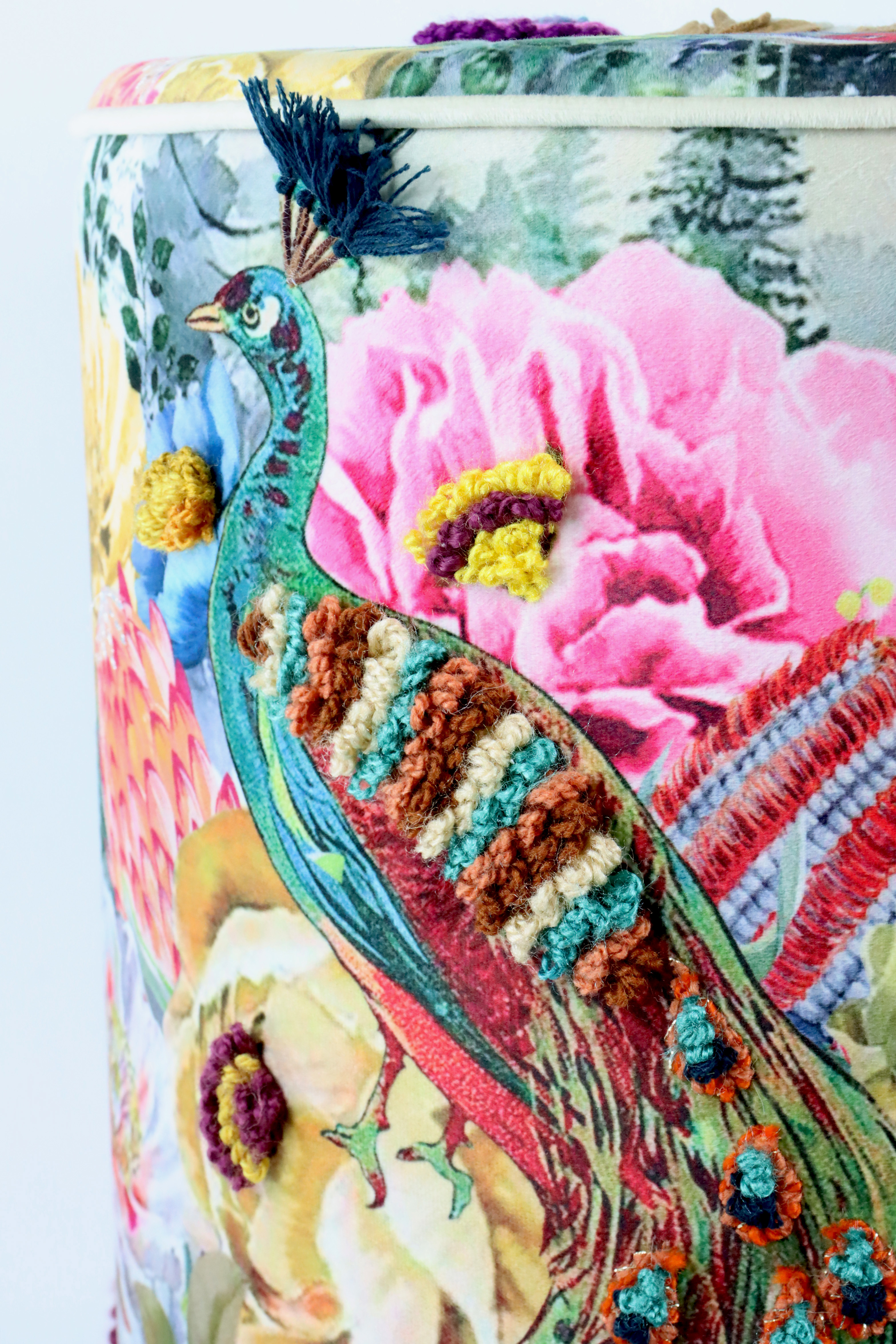 **Mots clés pertinents pour les moteurs de recherche:** Pouf motif paon, accessoires d'intérieur printemps 2023, pouf exclusif, design d'intérieur tendance, habitat lifestyle.