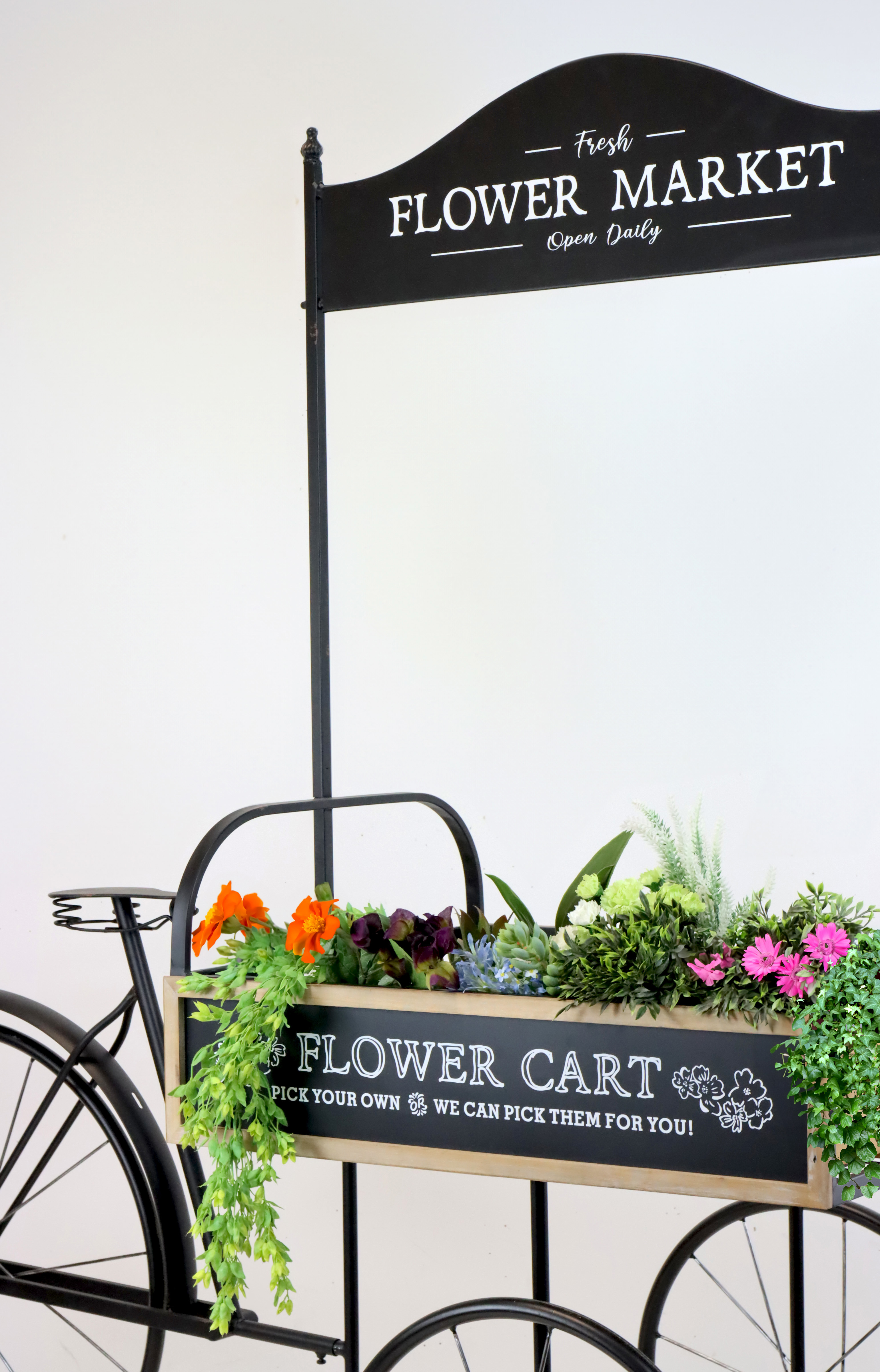 Parfait pour la saison printemps/été, le vélo en noir apporte une touche subtile mais stylée. Placez-le bien en vue dans votre magasin et profitez de la possibilité de présenter des compositions florales créatives qui raviront vos clients. La construction solide en fer garantit que le vélo est non seulement durable, mais aussi suffisamment stable pour supporter différentes compositions florales ou autres idées de décoration. Le design naturel du bois ajoute une note chaleureuse et crée un lien harmonieux entre l'aménagement commercial et la présentation des produits.