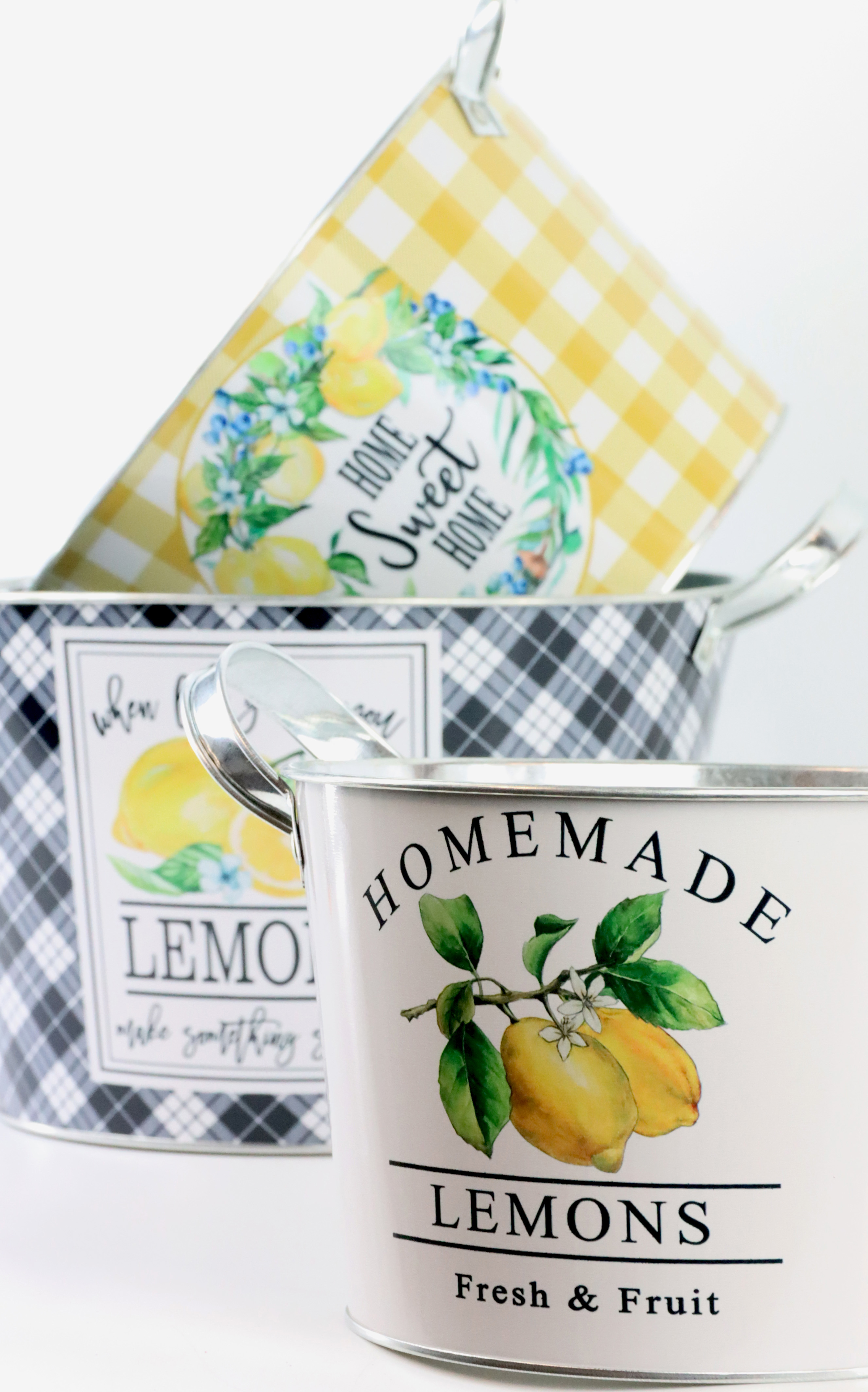 Chaque pot du set - d'une taille d'environ 36 cm, 30,5 cm et 26 cm - est décoré d'un charmant motif de citron qui confère à l'environnement une touche d'ambiance méditerranéenne. La construction robuste en zinc assure la durabilité et la résistance, ce qui rend ces pots non seulement décoratifs, mais aussi pratiques. Ils sont idéaux pour une utilisation à l'intérieur et à l'extérieur et offrent de nombreuses possibilités d'aménagement, que ce soit comme pots de plantes, comme rangement élégant ou comme élément de décoration à part entière.