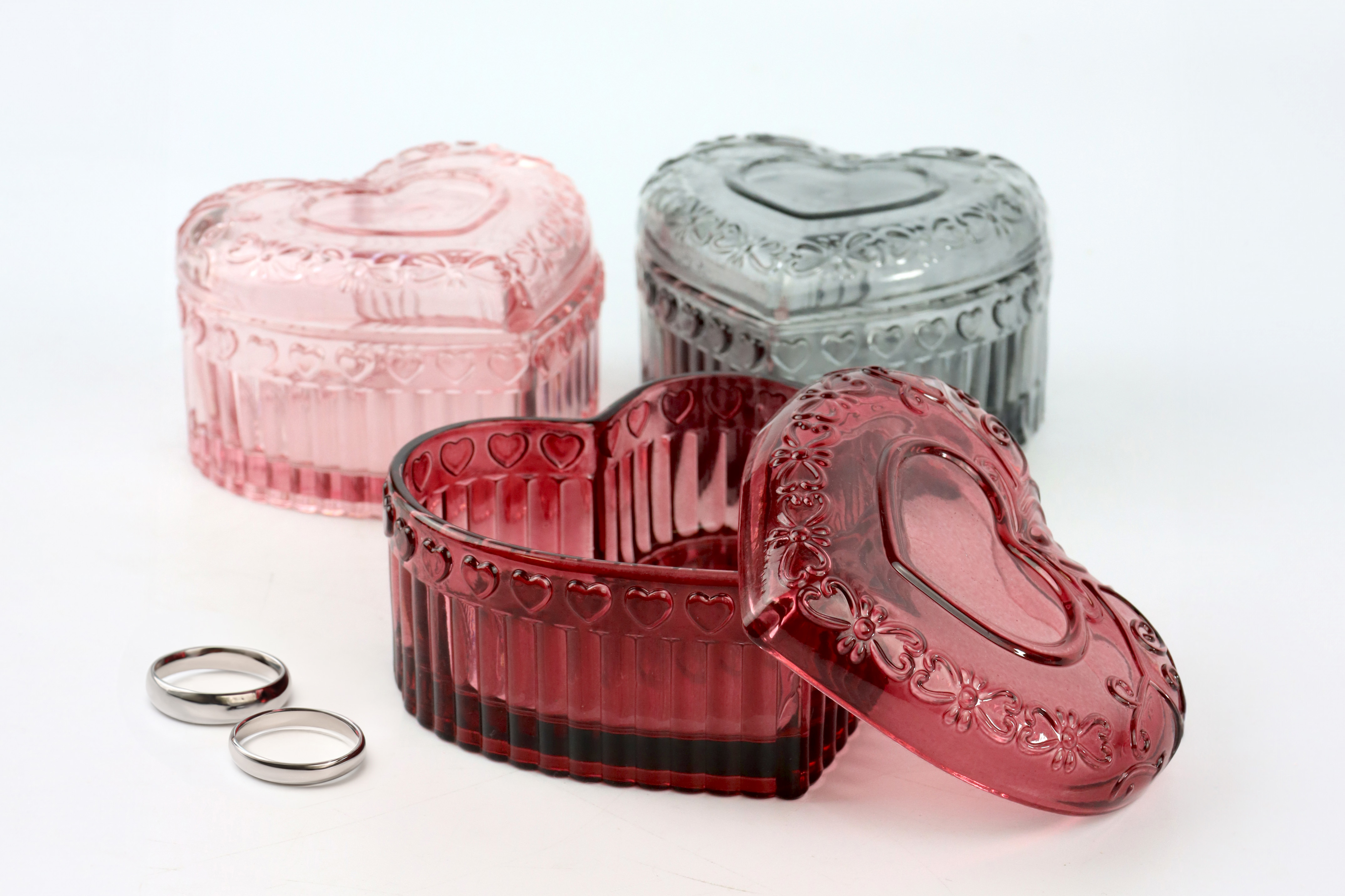 Donnez à votre assortiment un flair particulier avec nos charmantes BOÎTES CŒUR "PRIMAVERA" S/3. Ce set de trois pièces en verre noble dans un ton rouge vif est le choix parfait pour le commerce de détail stationnaire moderne dans le domaine de l'habitat et du lifestyle. Idéales pour le printemps et l'été, les boîtes en forme de cœur apportent non seulement un vent de fraîcheur dans la décoration de vos clients, mais sont également extrêmement pratiques.