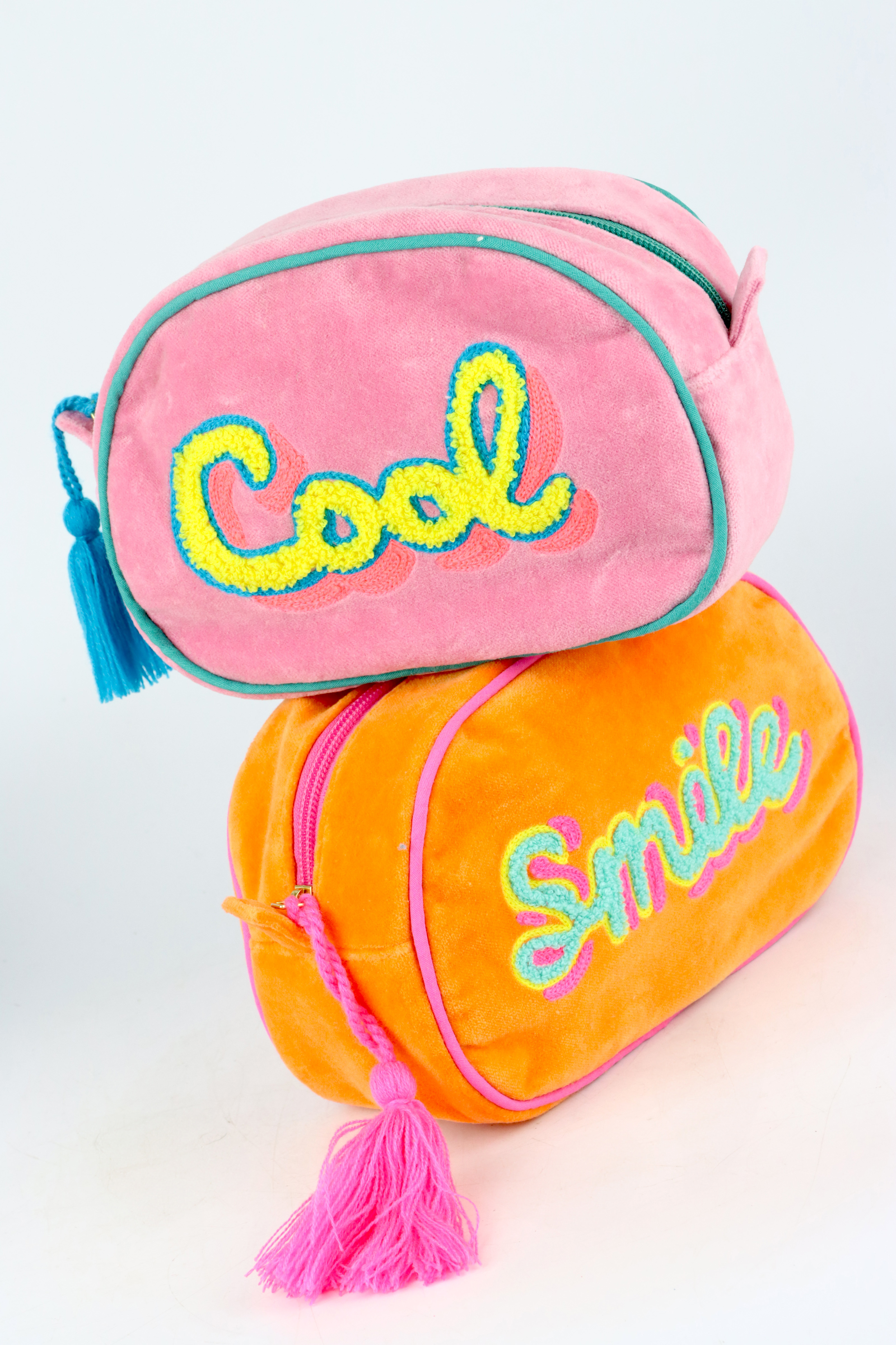 Découvrez le set de trousses de toilette stylé et pratique "FANCY" S/2 - un must pour tout détaillant orienté lifestyle dans le domaine de la maison et du style de vie. Ce set exquis de deux trousses de toilette, composé des designs "Smile" et "Cool", est le complément parfait pour l'assortiment printemps-été de votre magasin.