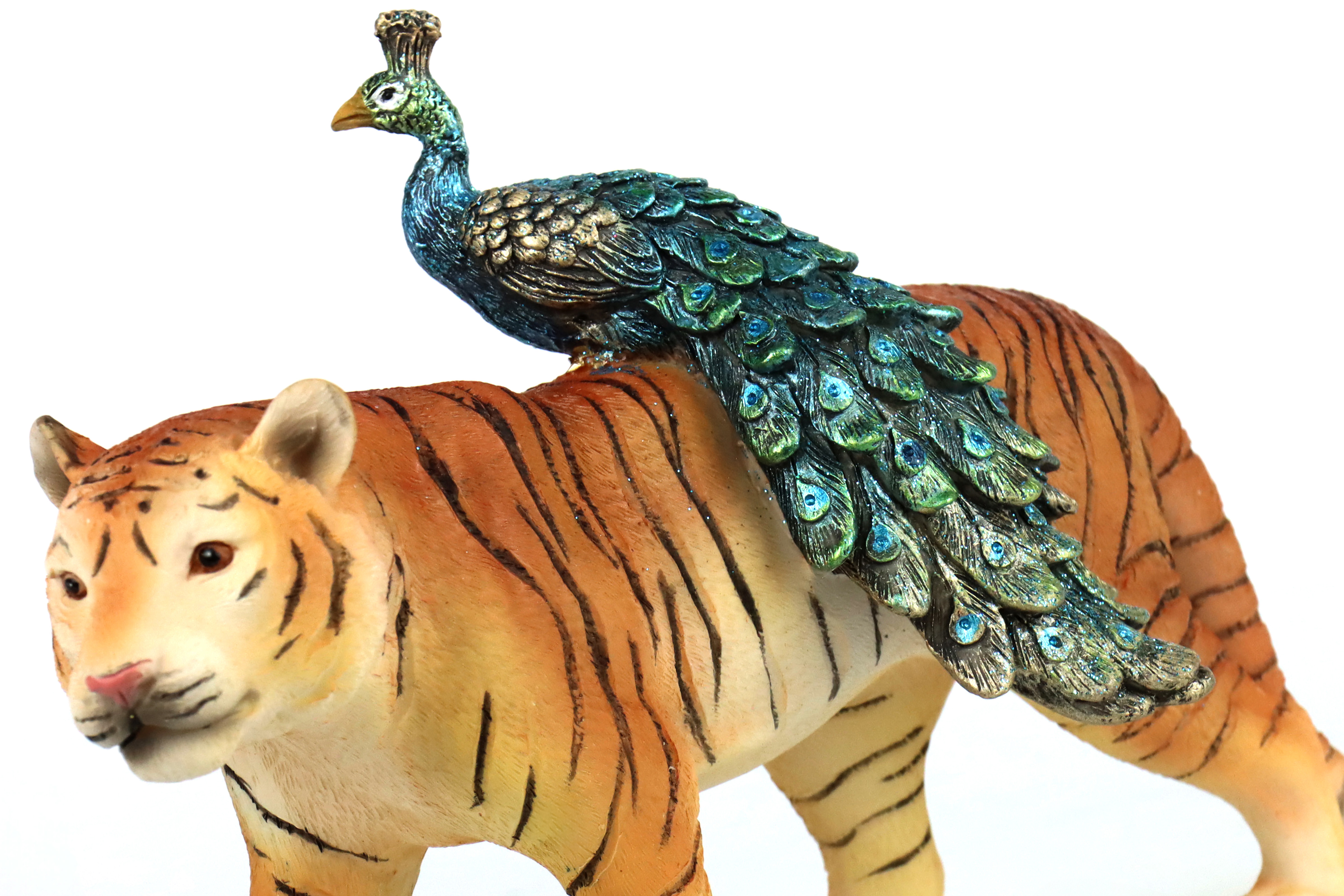 La combinaison harmonieuse du tigre et du paon symbolise la force, la beauté et l'individualité et s'adresse ainsi aux types de clients les plus divers. Pour le commerce de détail stationnaire, cela signifie une possibilité idéale d'enthousiasmer les clients par un produit exceptionnel et d'augmenter les chiffres de vente. Misez sur le caractère unique et la qualité de la FIGURE "CARNIVALE" et transformez votre magasin en un univers d'inspiration et d'expérience.
