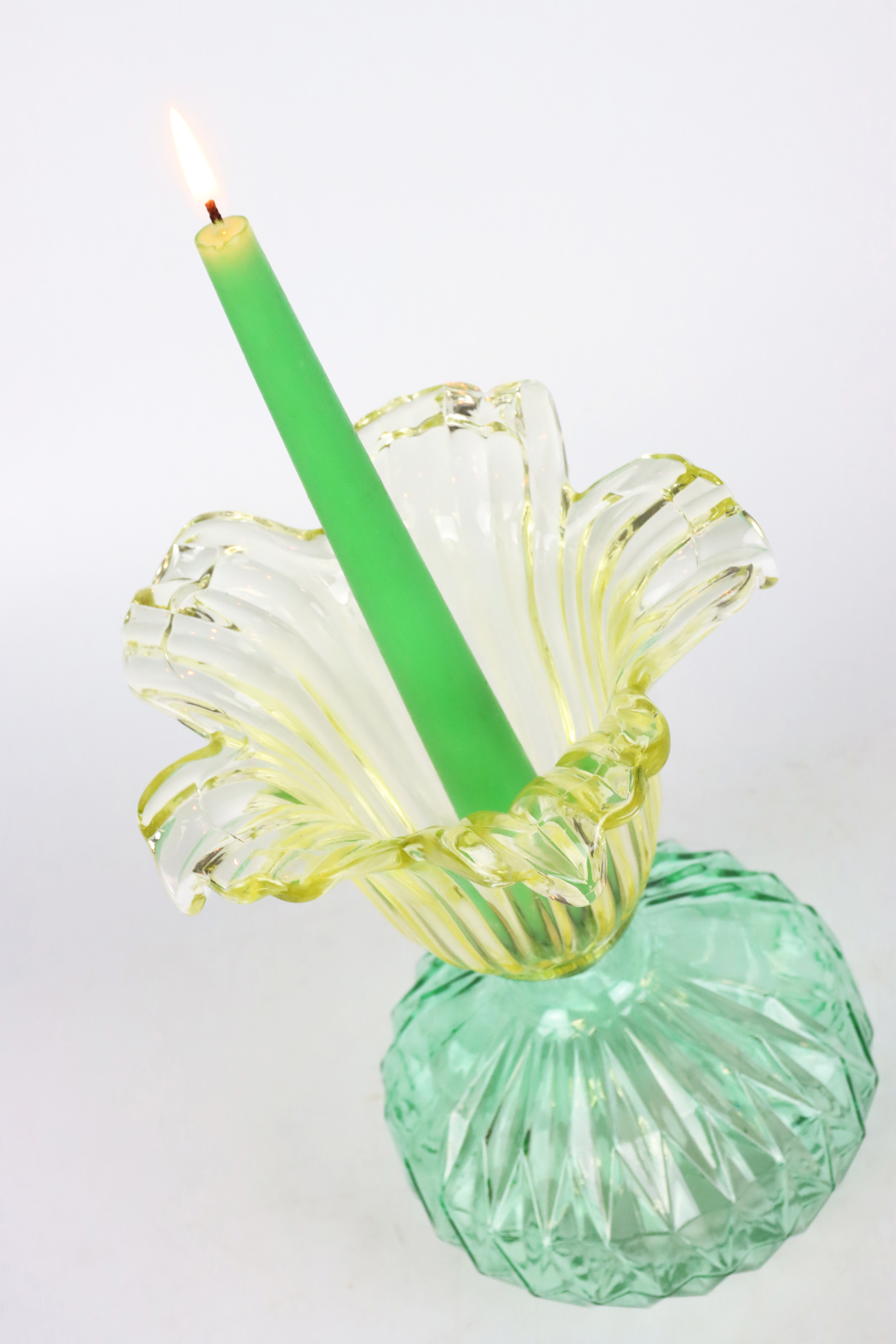 Fabriqués en verre de haute qualité, les chandeliers se distinguent par leur construction robuste et leurs couleurs exquises qui plongent chaque pièce dans une lumière chaleureuse. D'une hauteur d'environ 23 cm, ces chandeliers ont la taille idéale pour être mis en valeur aussi bien sur la table de la salle à manger que sur le manteau de la cheminée ou le rebord de la fenêtre. Le design coloré du chandelier "San Remo" rappelle les couleurs vives de la Riviera italienne et apporte la légèreté du printemps et de l'été dans chaque pièce.