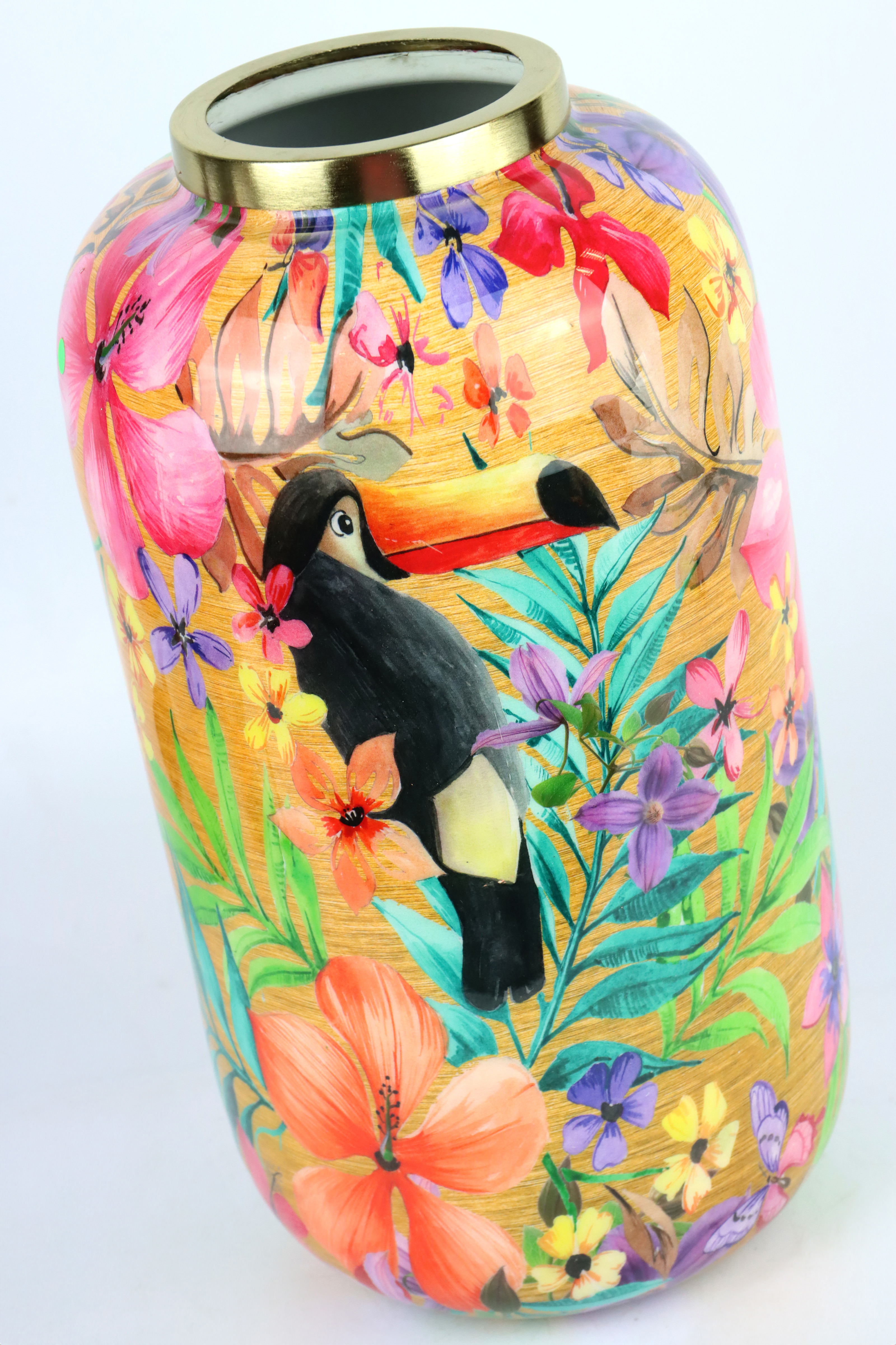 - Vase décoratif avec motif d'oiseau de paradis en fer de haute qualité