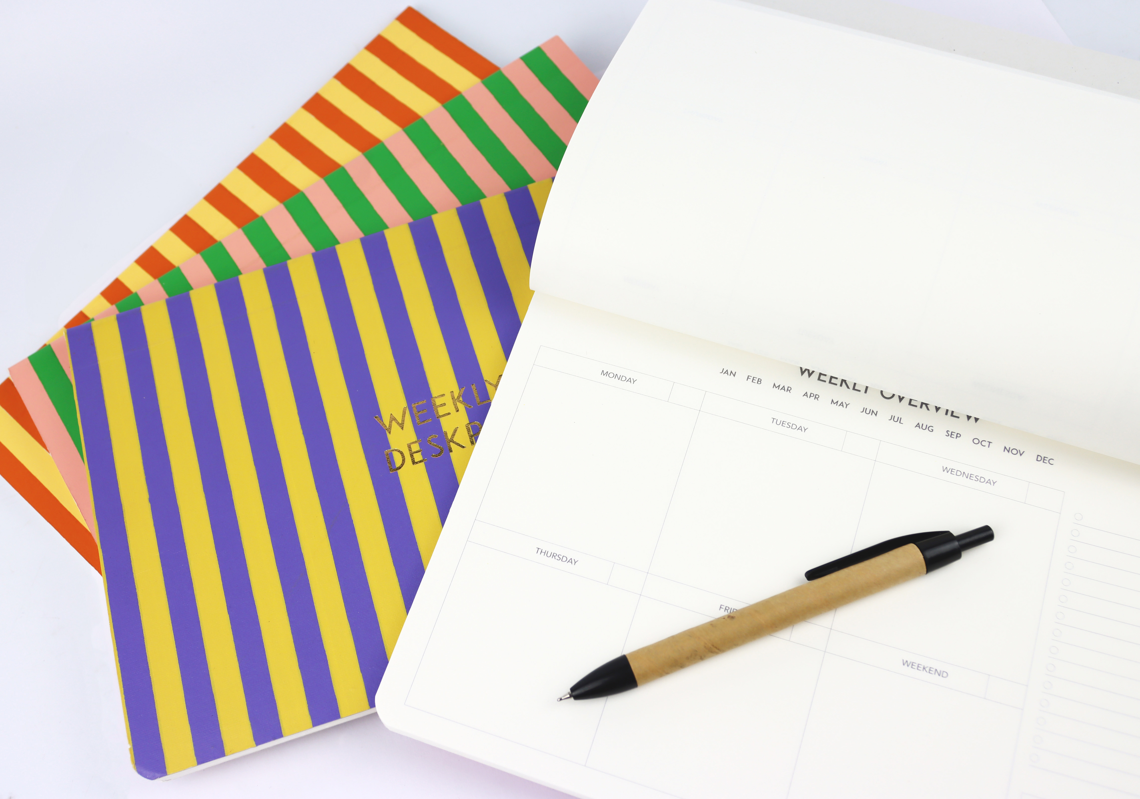 Nos agendas hebdomadaires ne sont pas seulement un outil pratique pour l'organisation, mais aussi un cadeau parfait pour les collègues et les partenaires commerciaux. Que ce soit pour encourager le travail d'équipe ou comme accessoire utile pour une planification individuelle, ces plannings sont un complément inestimable pour votre environnement professionnel.