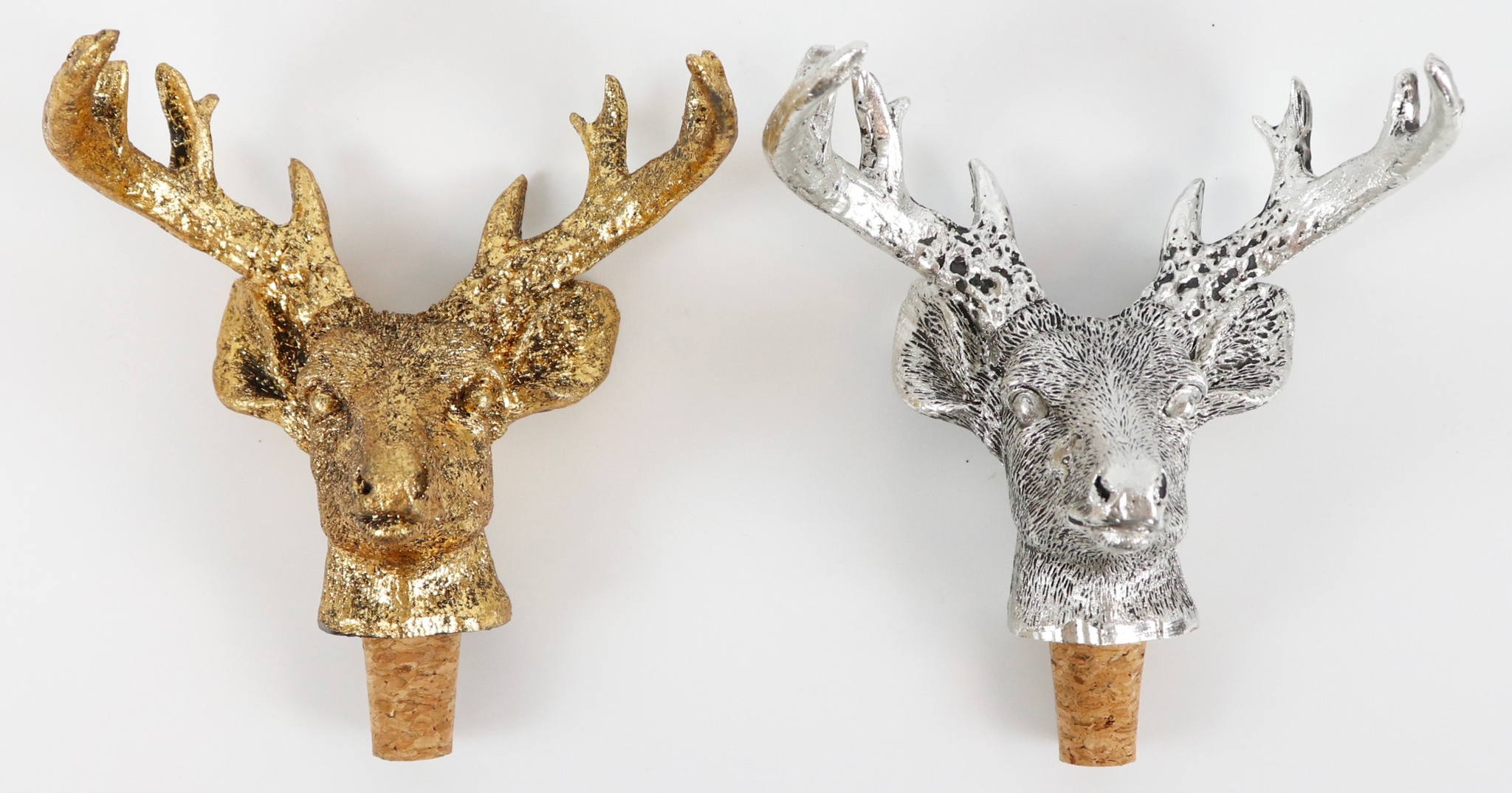 - Set de 2 bouchons de bouteille avec tête de cerf décorative