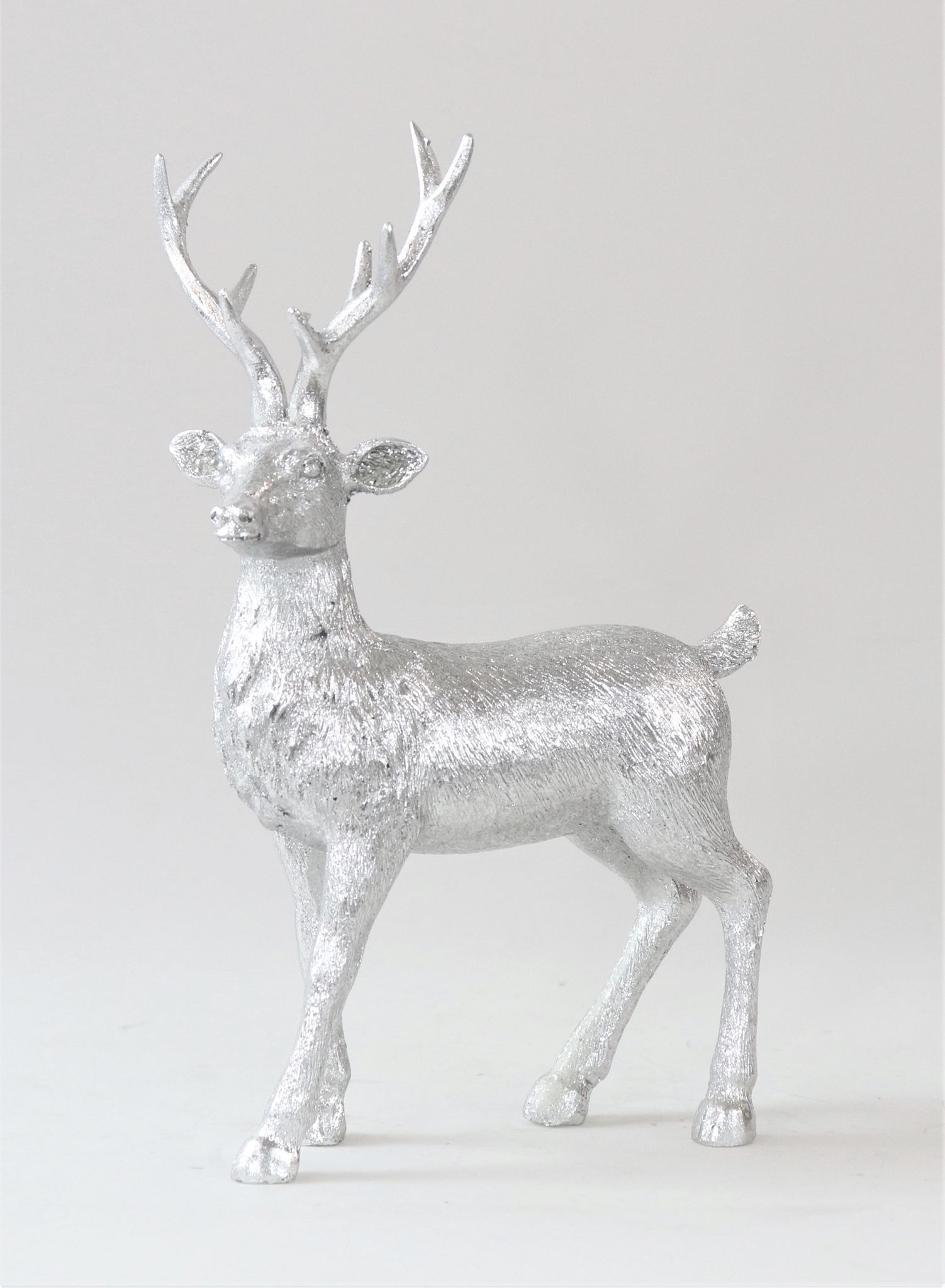 Le matériau exclusif qu'est la polyrésine offre une représentation fidèle aux détails et est synonyme de longévité et de qualité. L'éclat argenté reflète la lumière de manière optimale et fait briller le cerf dans un décor plein d'ambiance. Placez le cerf de manière judicieuse dans votre espace de vente et il suscitera certainement l'intérêt de vos clients. Cette figurine décorative est idéale pour donner à votre magasin une atmosphère particulièrement festive ou pour être utilisée comme point d'orgue dans des étalages thématiques.